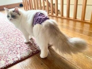 Amazing! This diaper has allowed my elderly male cat with urinary issues to rejoin the family and we are all so, so happy to have him back! He didn’t fight it at all—he seems very comfortable in it. I think he is just happy to get his freedom back, since he has spent the last 6-8 weeks being limited to certain rooms and heavy monitoring. He is a happy, happy boy again!