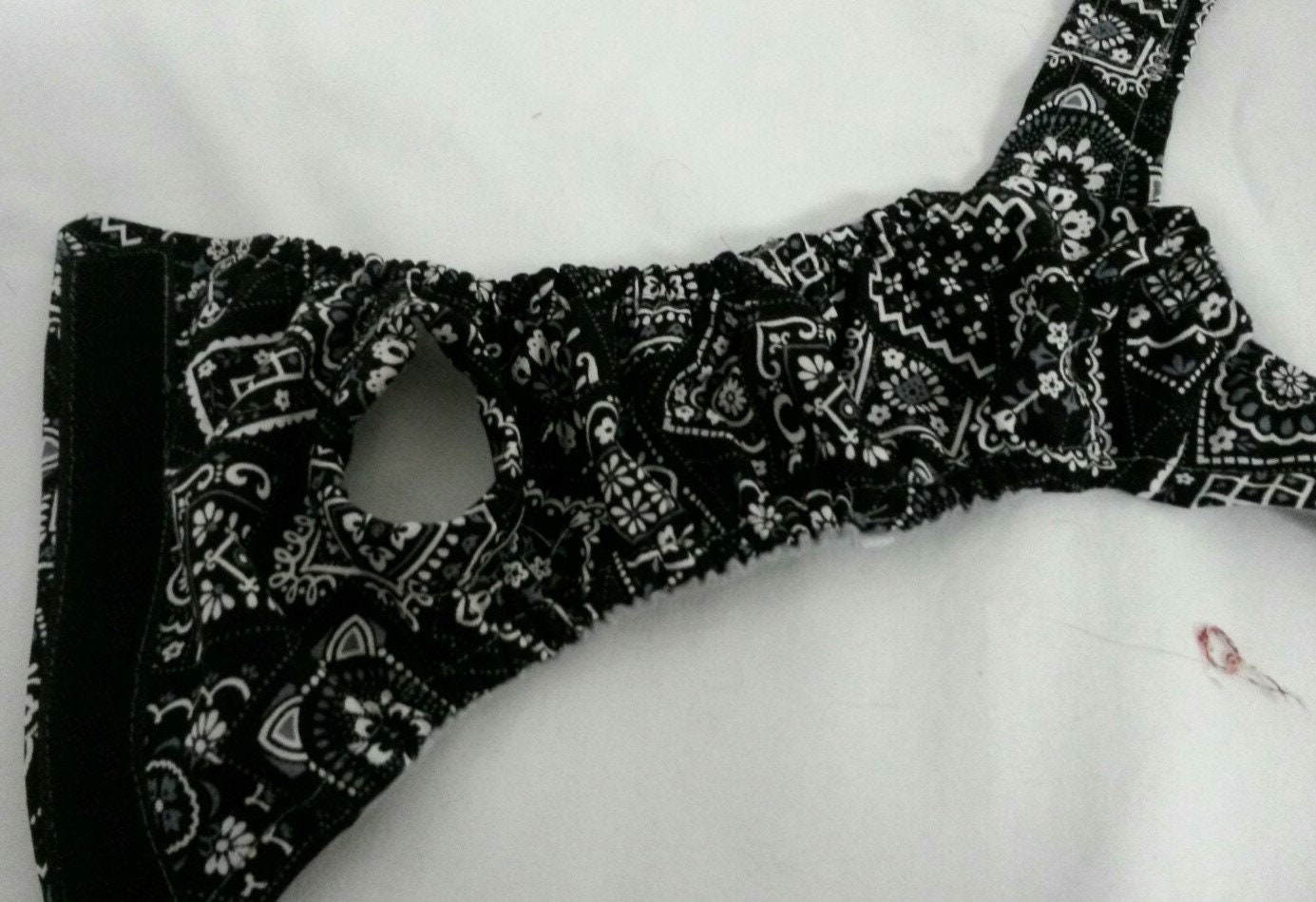 BLADDER PADS REQUIRED: A washable or disposable BLADDER pad will be required inside the garment. You may order my washable bladder pads or disposable ones. Disposable bladder pads have an adhesive. Human grade bladder pads are available thru my shop as are the washables.