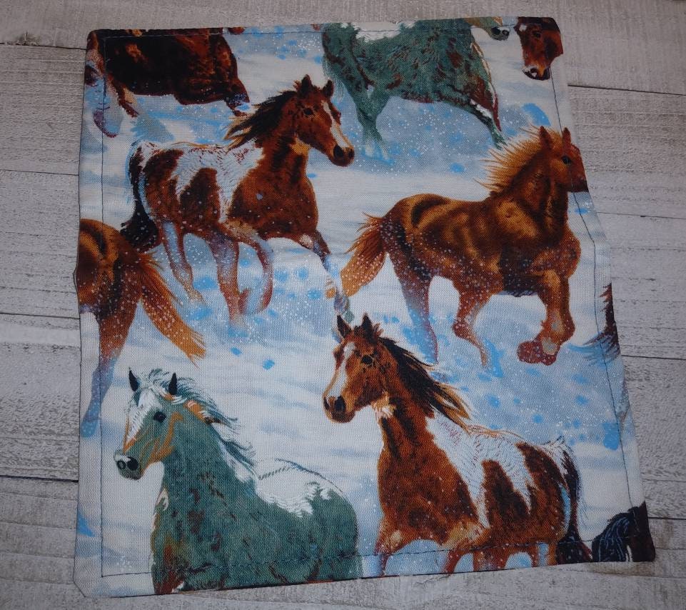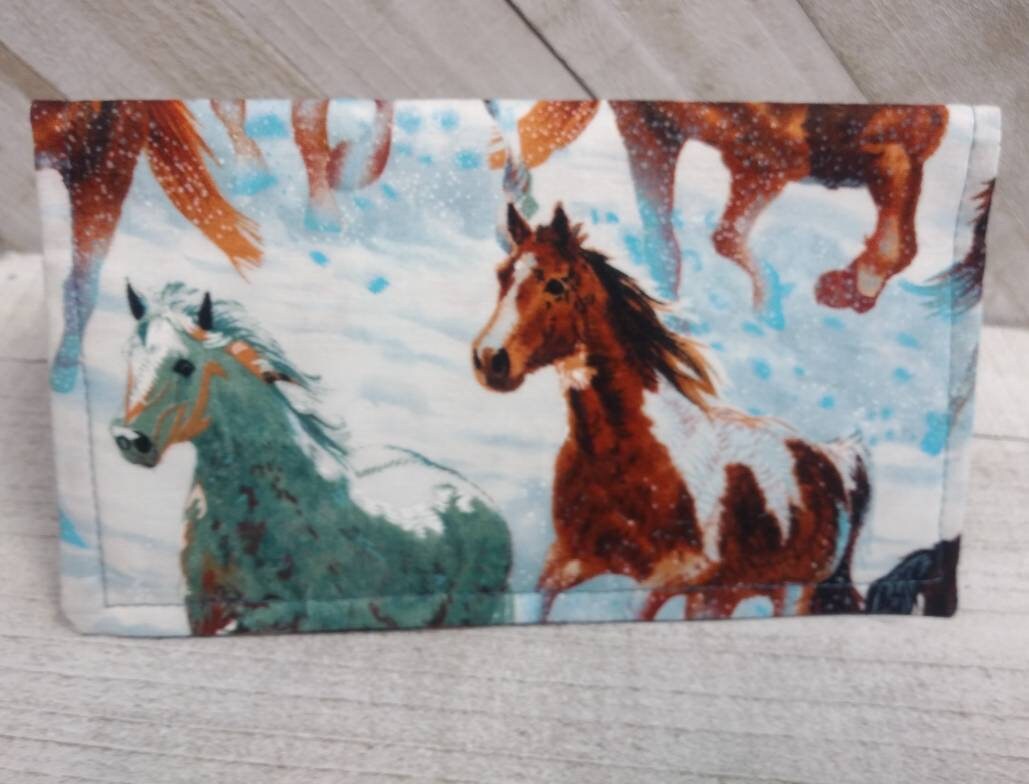 HORSES Winter Scene Checkbook Cover Fabric Wallet Holder Debit Registry Clutch Purse Billfold Coupon Keeper
