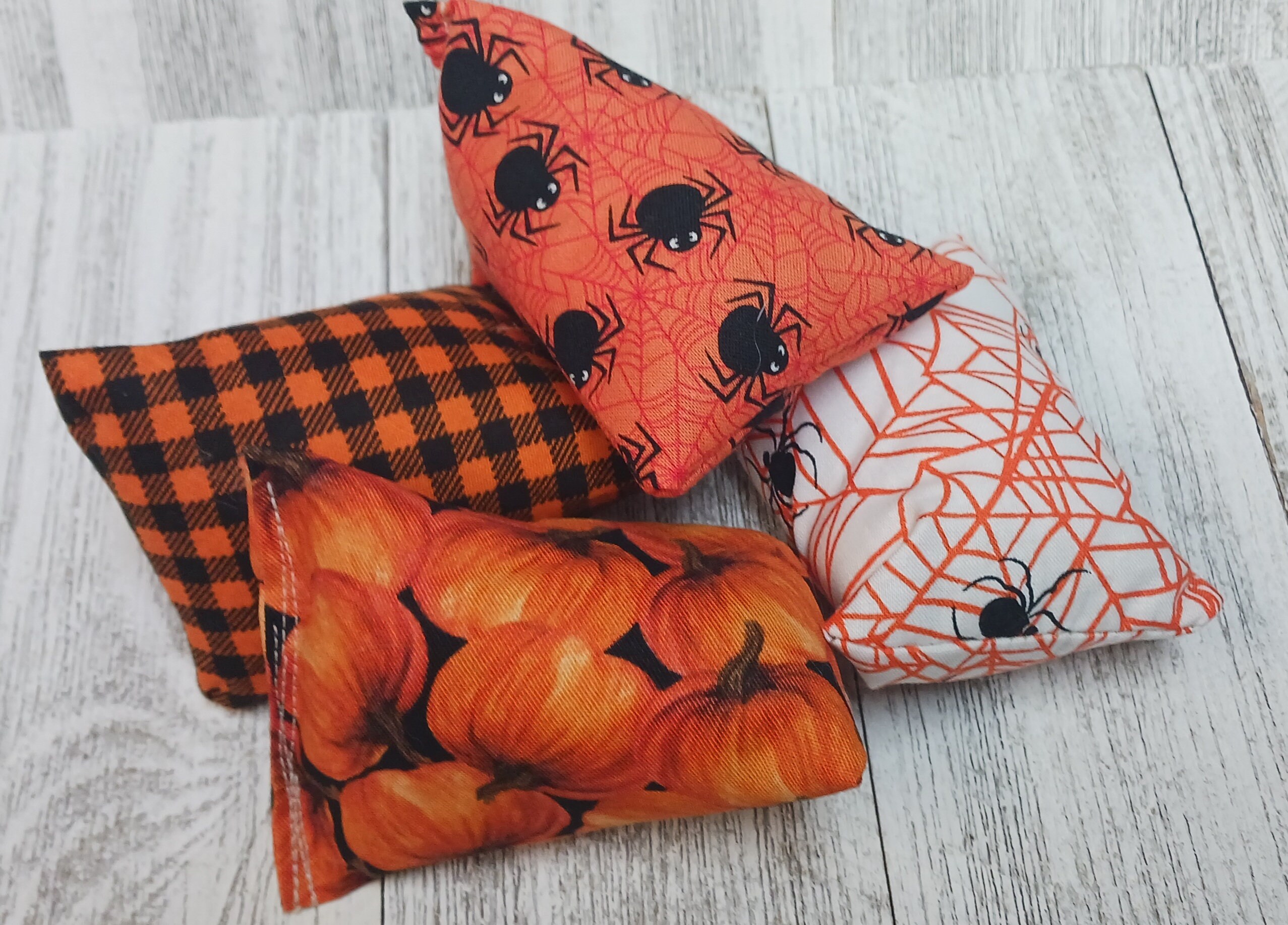 This listing is for 3 rectangle catnip pillows stuffed in poly fil and several teaspoons of organic catnip inside. 100% cotton fabric is used. These pillows are about 2 x 3 inches in size. Machine serged edges and sewn tightly at the closure. For kittens 6 mos old and up since they are are unable to smell catnip until about 6 mos. of age.