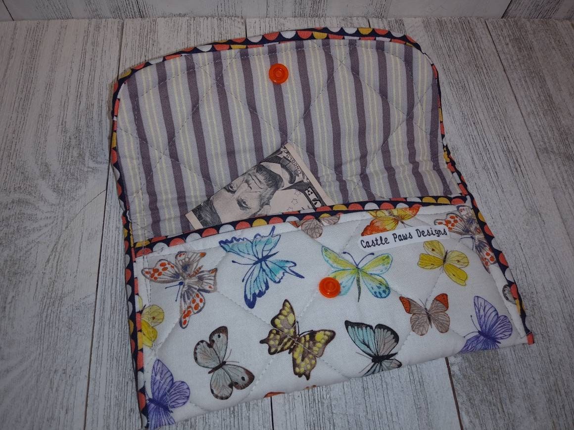 USA Handmade fabric snap Clutch, purse or WALLET by Castle Paws Designs.
