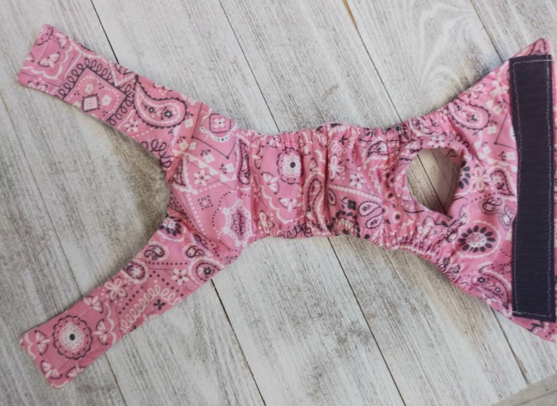 This listing is for my handmade, eco friendly FEMALE DOGGIE DIAPERS PANTY-Sanitary BITCHES BRITCHES. Made-to-order, washable, reusable, fabric diaper garments for incontinence, bladder & kidney issues, bitches in season, exitable urination and any other inappropriate wetting in your home. (They will not protect against conception.) Protect your environment with confidence while maintaining your bitches dignity at home, hotels and shows without caging or restricting her mobility.