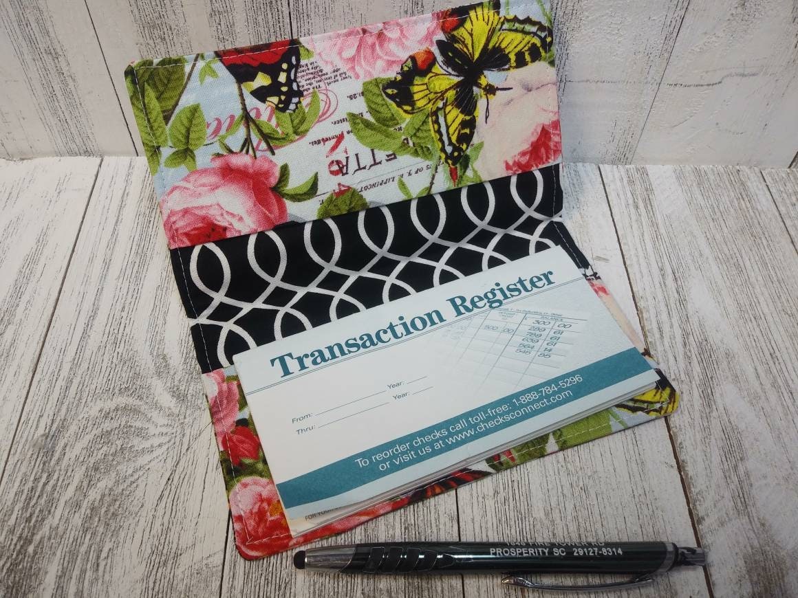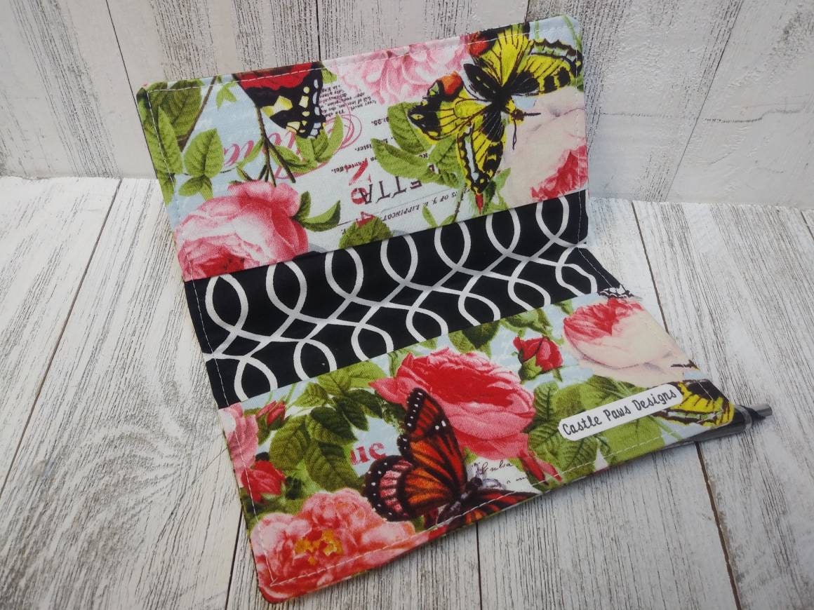 Fabric Check Book Cover BUTTERFLIES Registry Wallet Document Coupon Organizer Purse