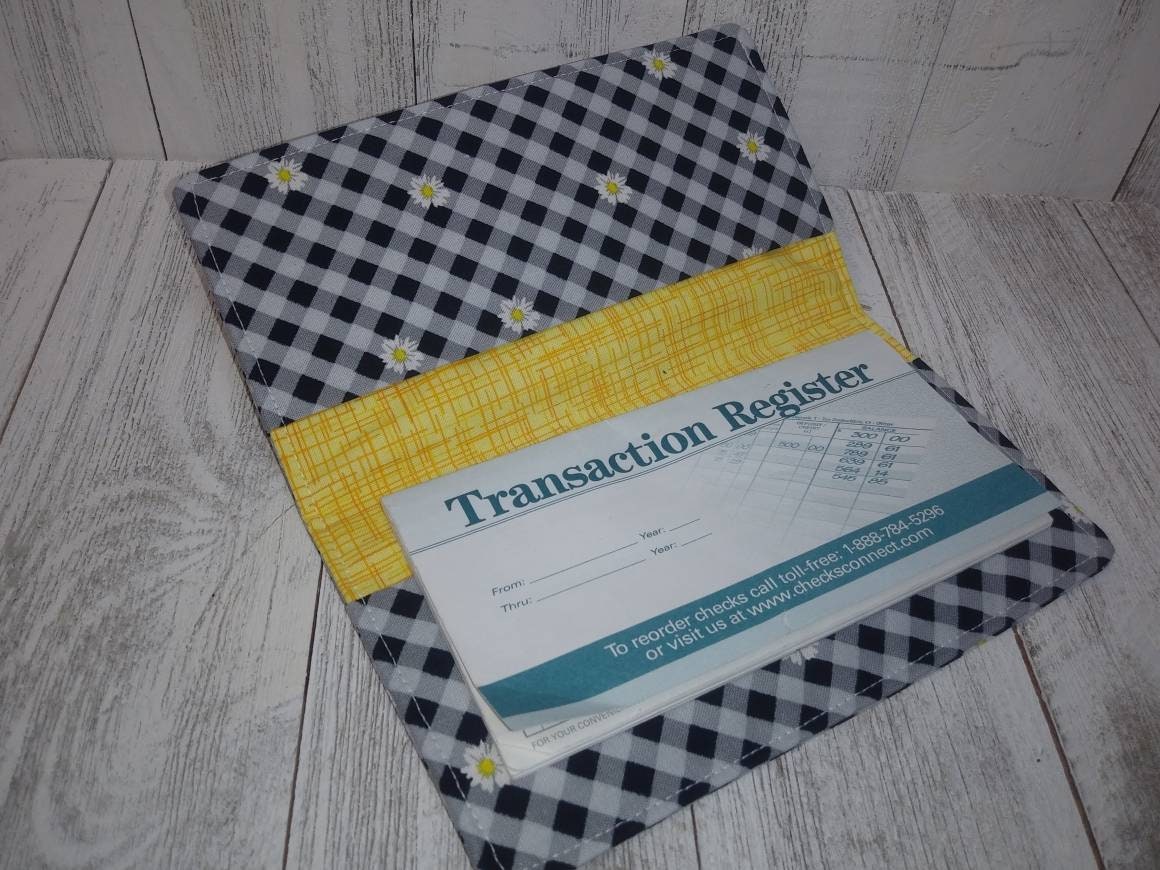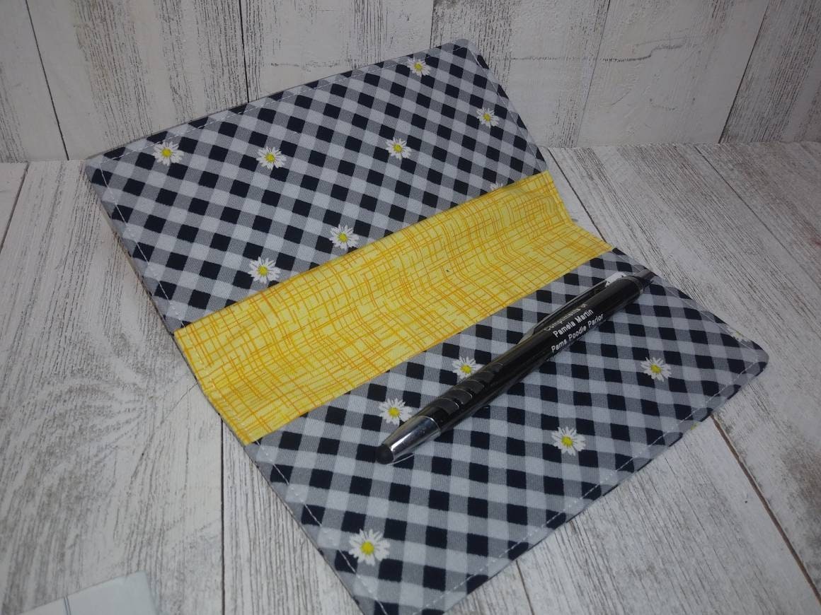 Fabric Check Book Cover Black Gingham Checks Daisy Registry Wallet Document Coupon Organizer Purse