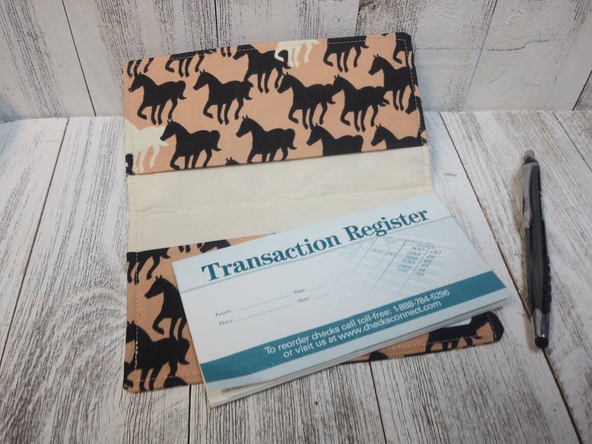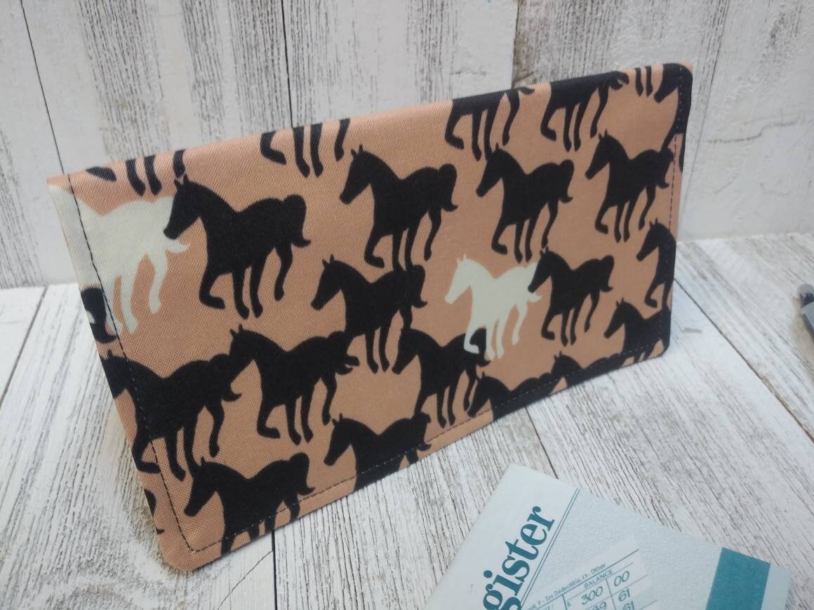 Fabric Check Book Cover Cute Horses Registry Wallet Document Coupon Organizer Purse