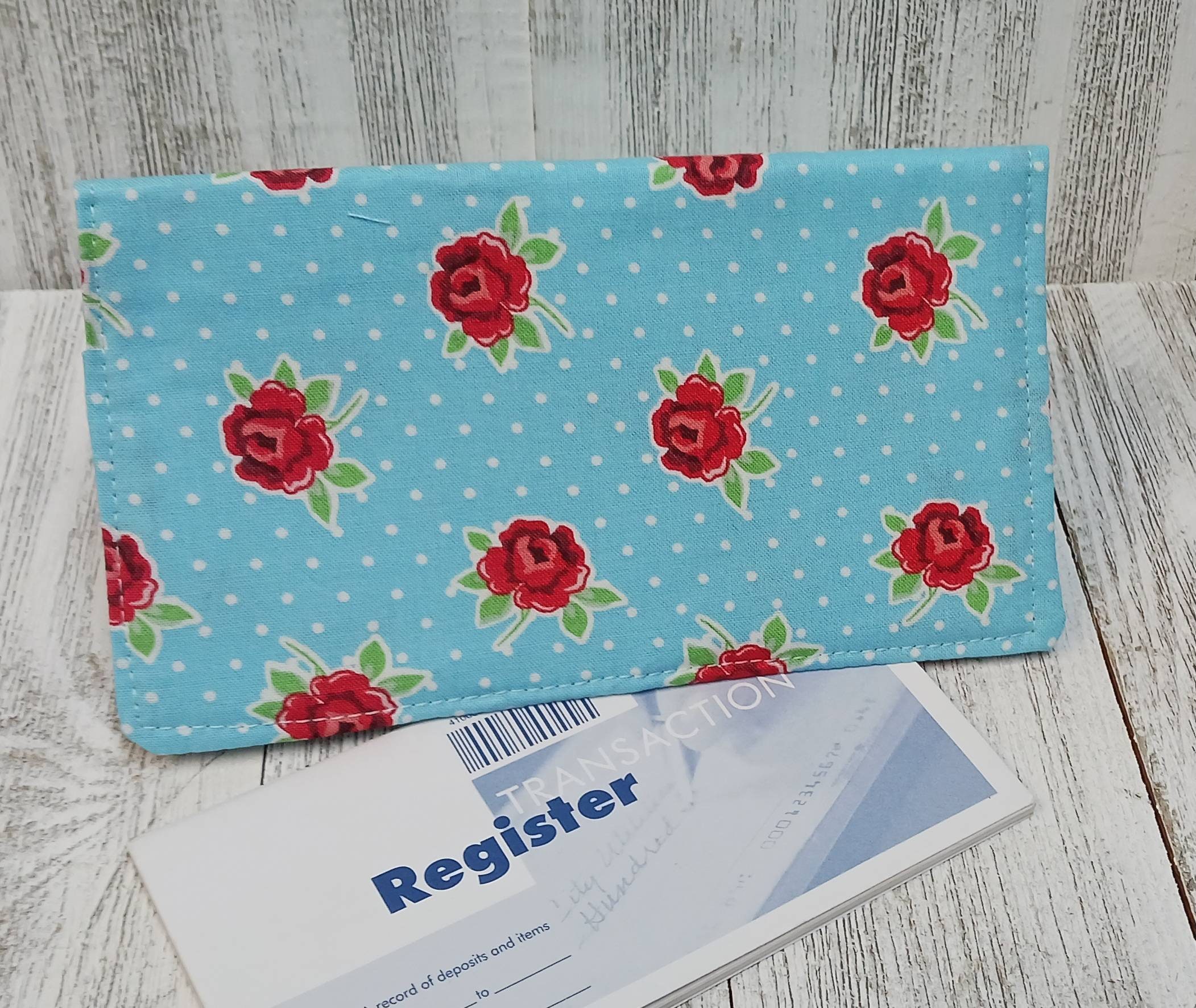Fabric Check Book Cover Red Love Rose's Shabby Chic Victorian Registry Wallet Document Coupon Organizer Purse