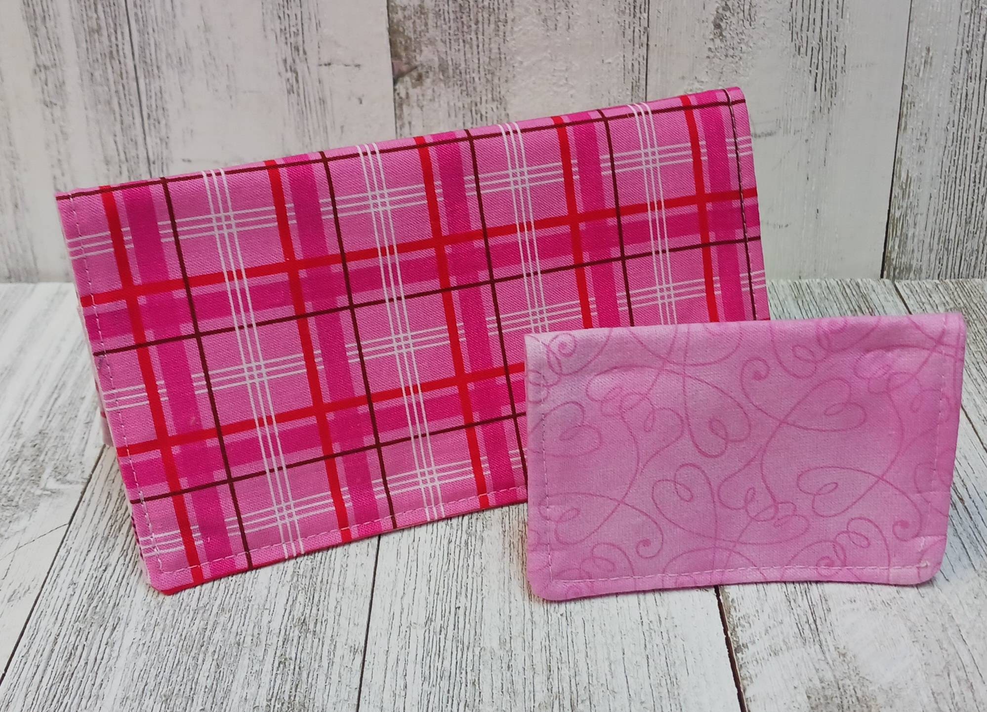 Pink Plaid Fabric Check Book Cover Registry Wallet Document Coupon Organizer Purse CC Case