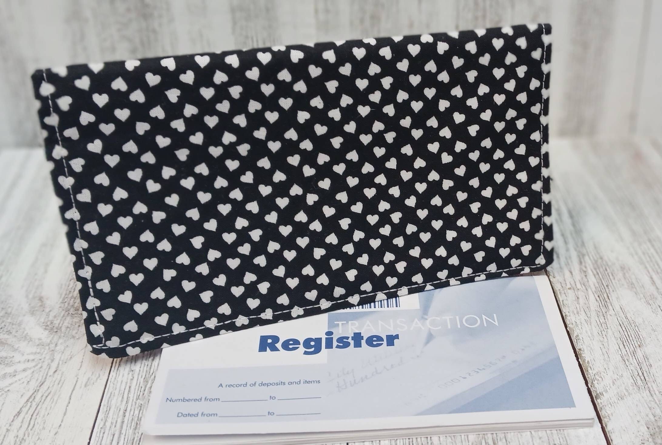 HEARTS Print CheckBook Cover Holder Coupon Wallet Clutch Purse Billfold USA Hand Made Ready-Made