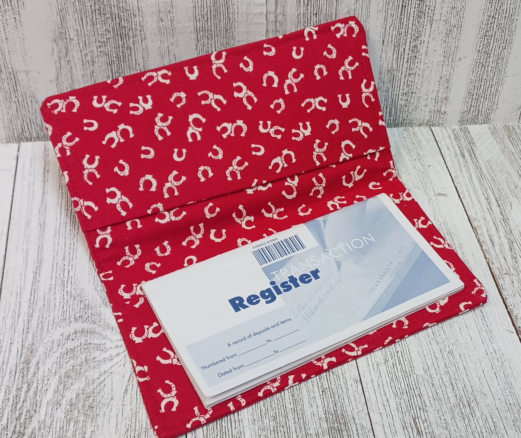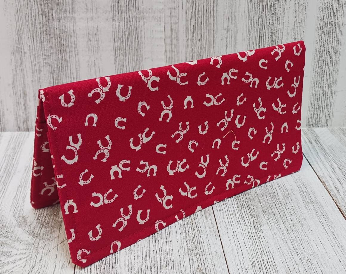 RED Horse Shoes Lucky Print CheckBook Cover Holder Coupon Wallet Clutch Purse Billfold USA Hand Made Ready-Made