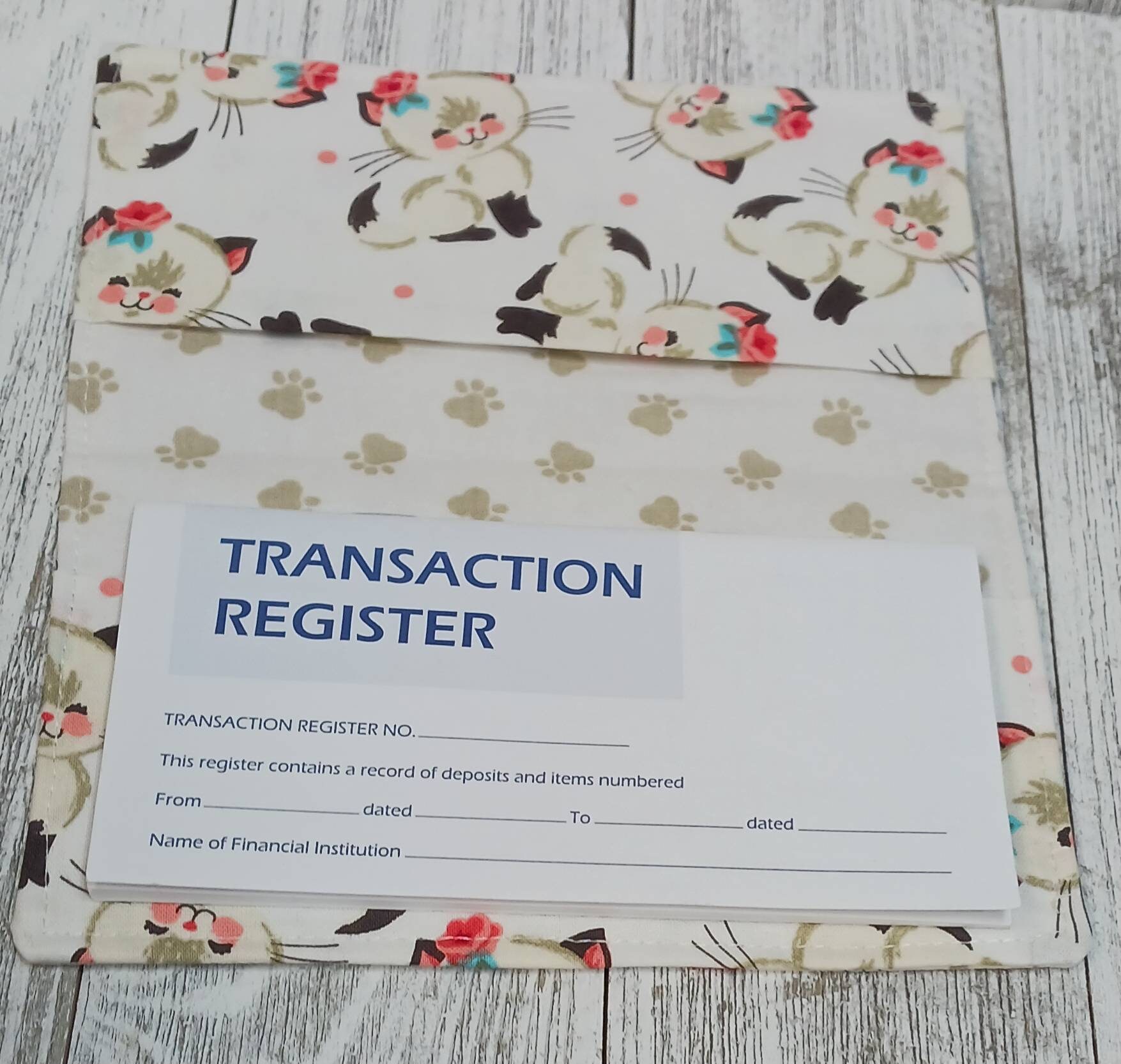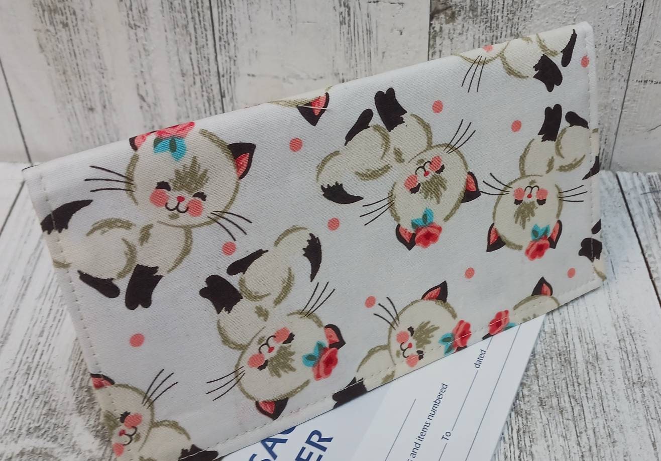 RETRO CATS Check Book Cover Transaction Registry Cotton Fabric Document Coupon Purse Accessory