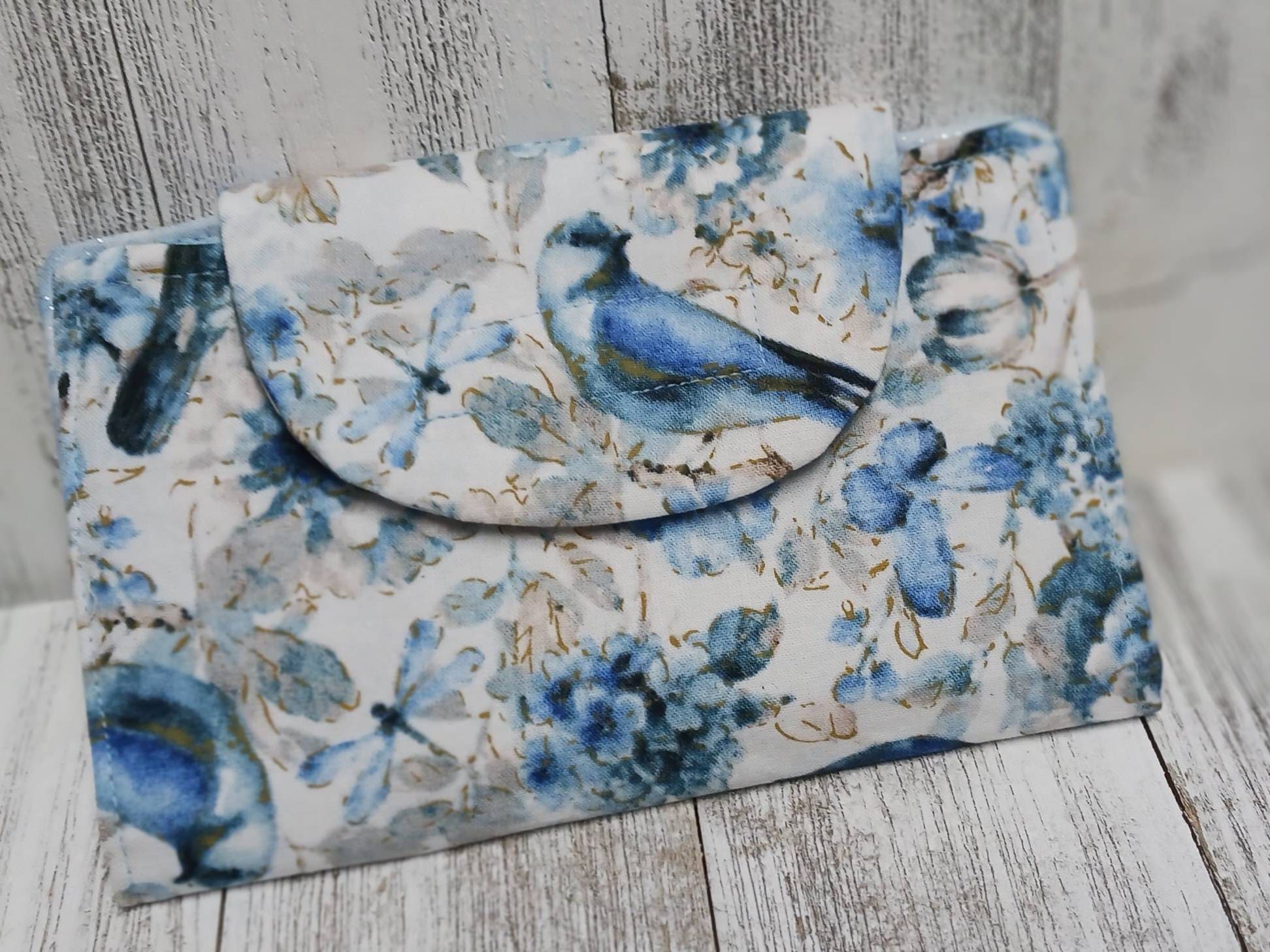 This listing is for one Ready made fabric clutch wallet, 2 pockets, 6 credit card slots, cash slot, hook and loop closure.