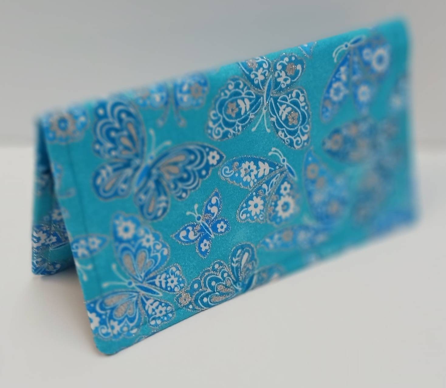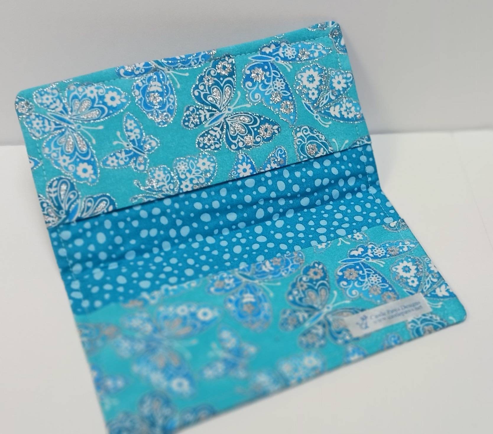 CHECK BOOK Cover Debit Card Registry Coupon Organizer Purse on Beautiful Blue Sparkle Butterfly Fabric