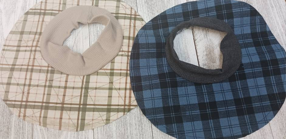 This listing is for 2 cat show bibs. One quilted cotton and one cotton interfaced Everyday with ribbed stretch turtleneck. Size large.