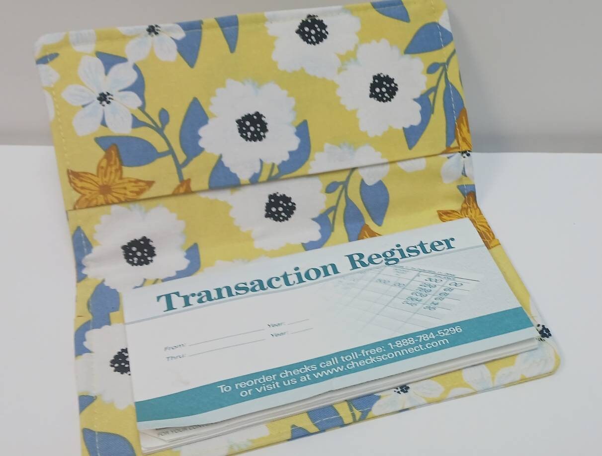 Checkbook/debit card registry keeper. Use as a billfold or purse for photos, credit cards, coupons, documents, etc .