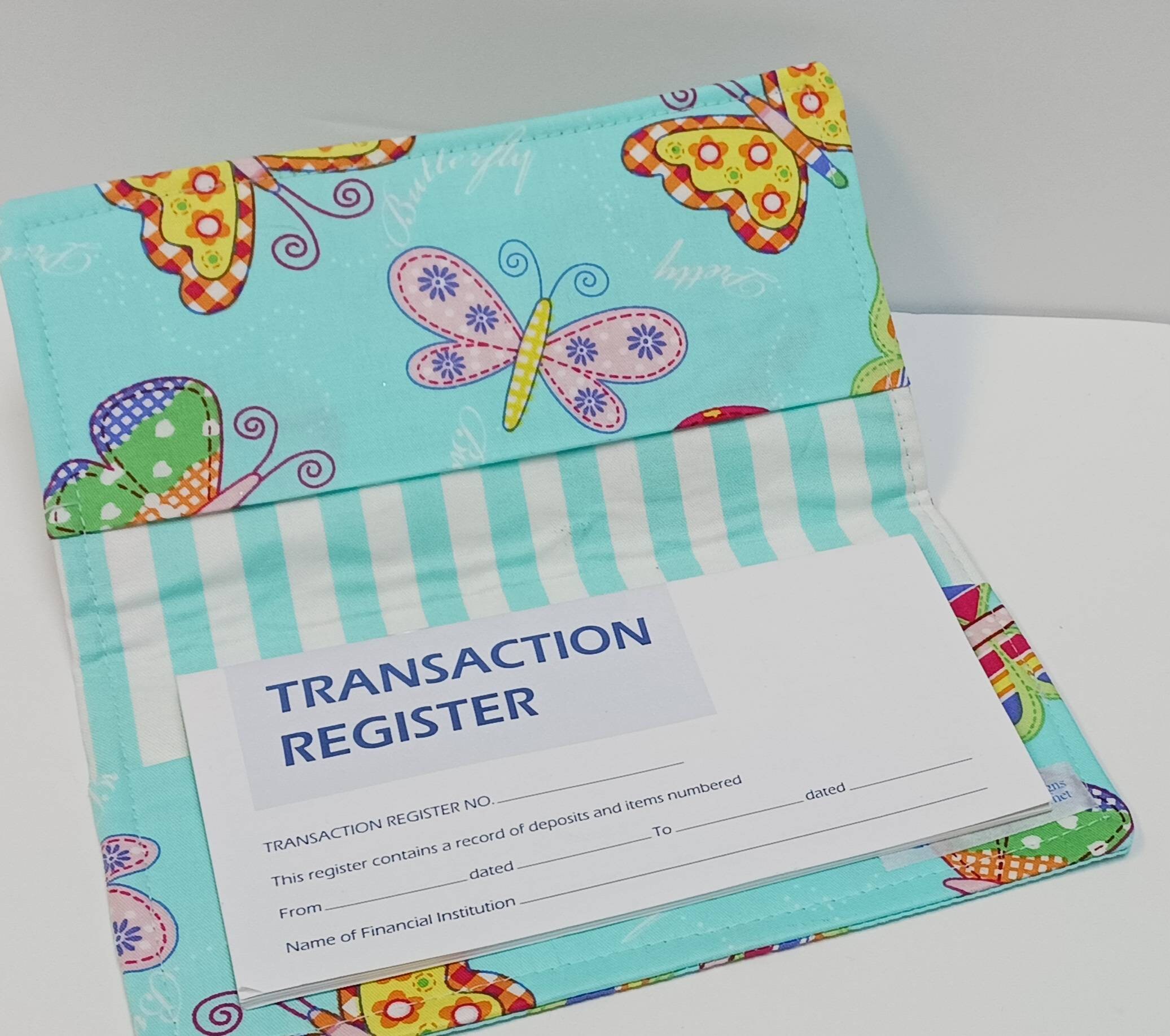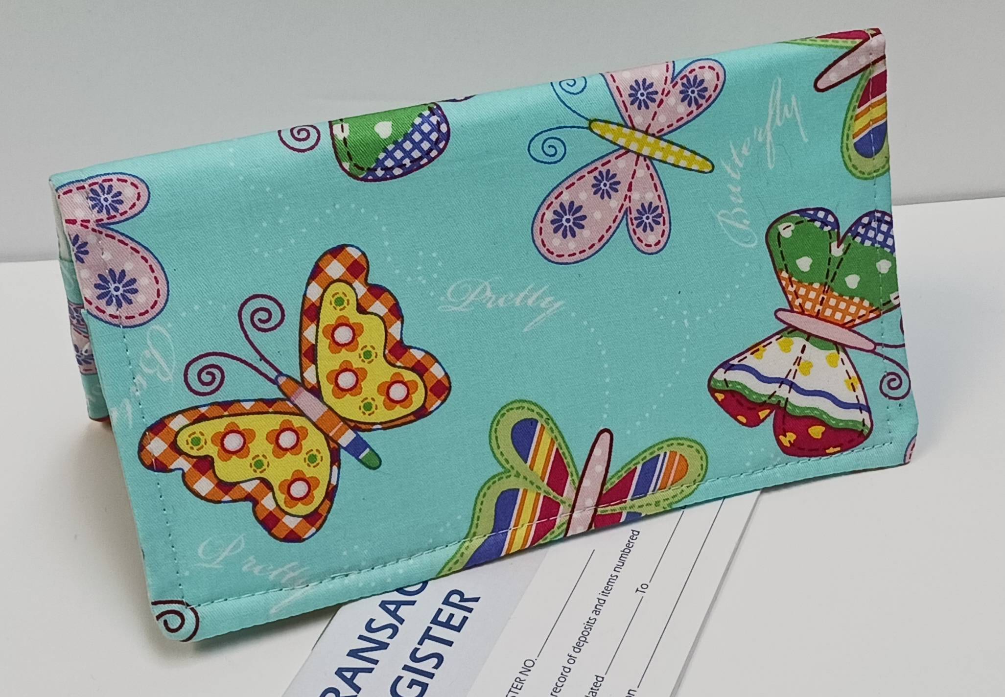 CHECK BOOK Cover and Debit Card Document Coupon Organizer Purse on Beautiful Teal Butterfly Fabric
