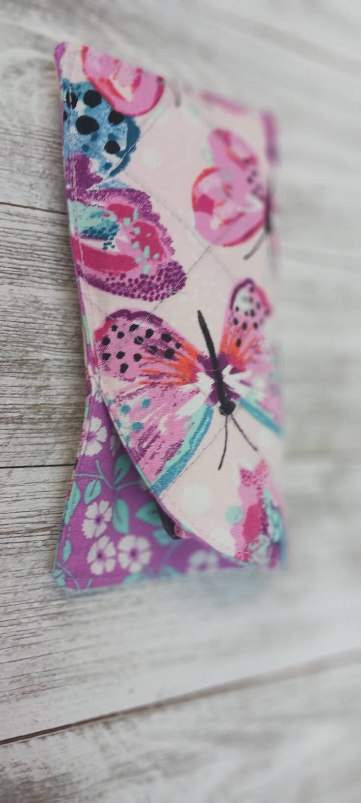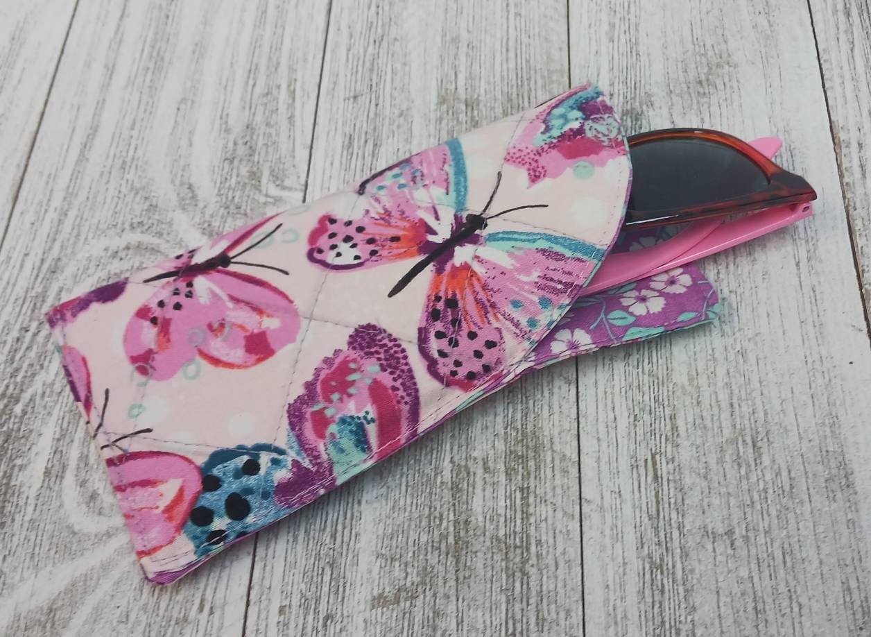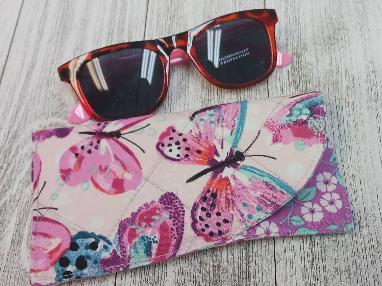 Quilted padded eye glass wear case for safe coverage and storage. Gentle machine wash or air dry.