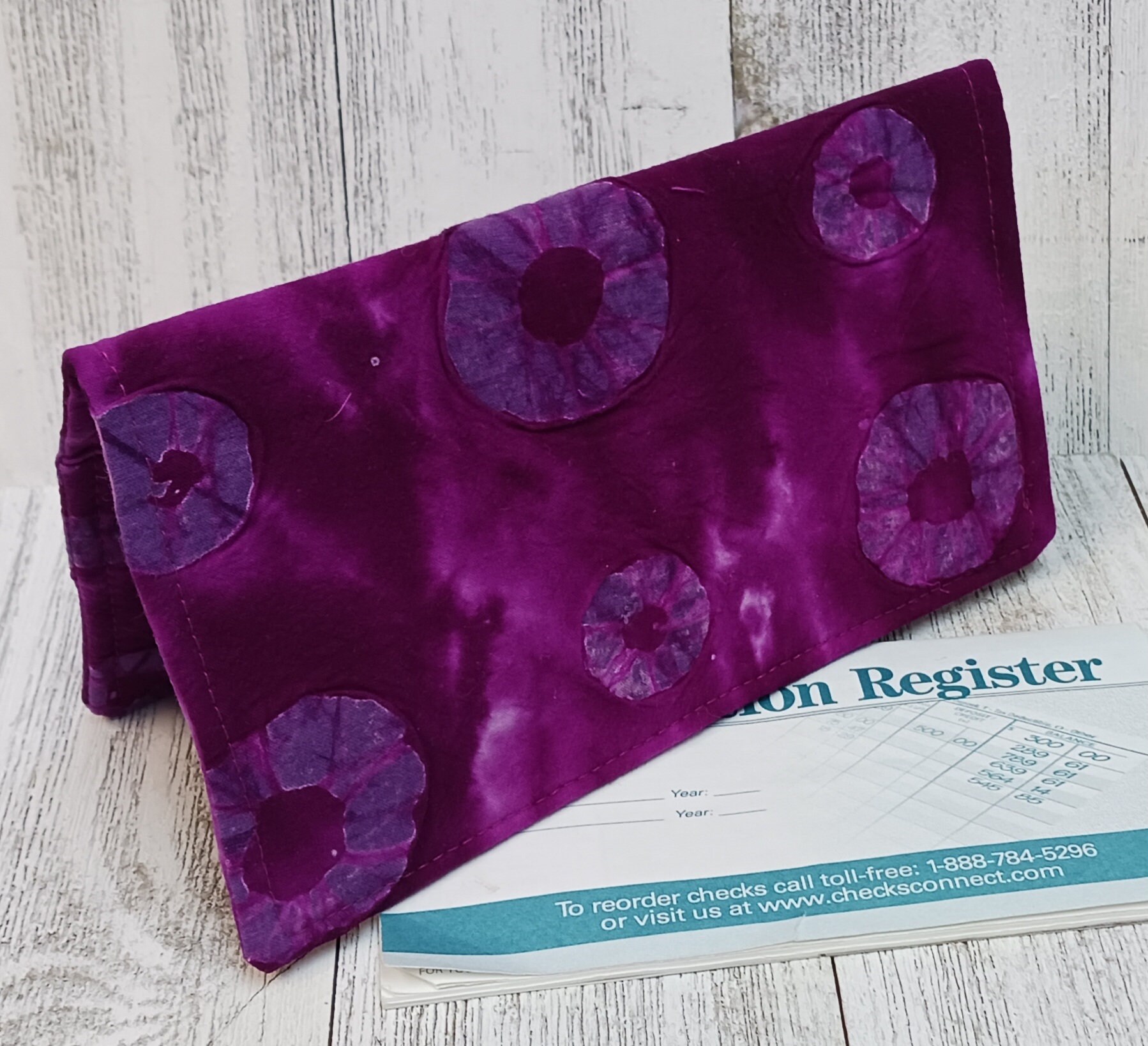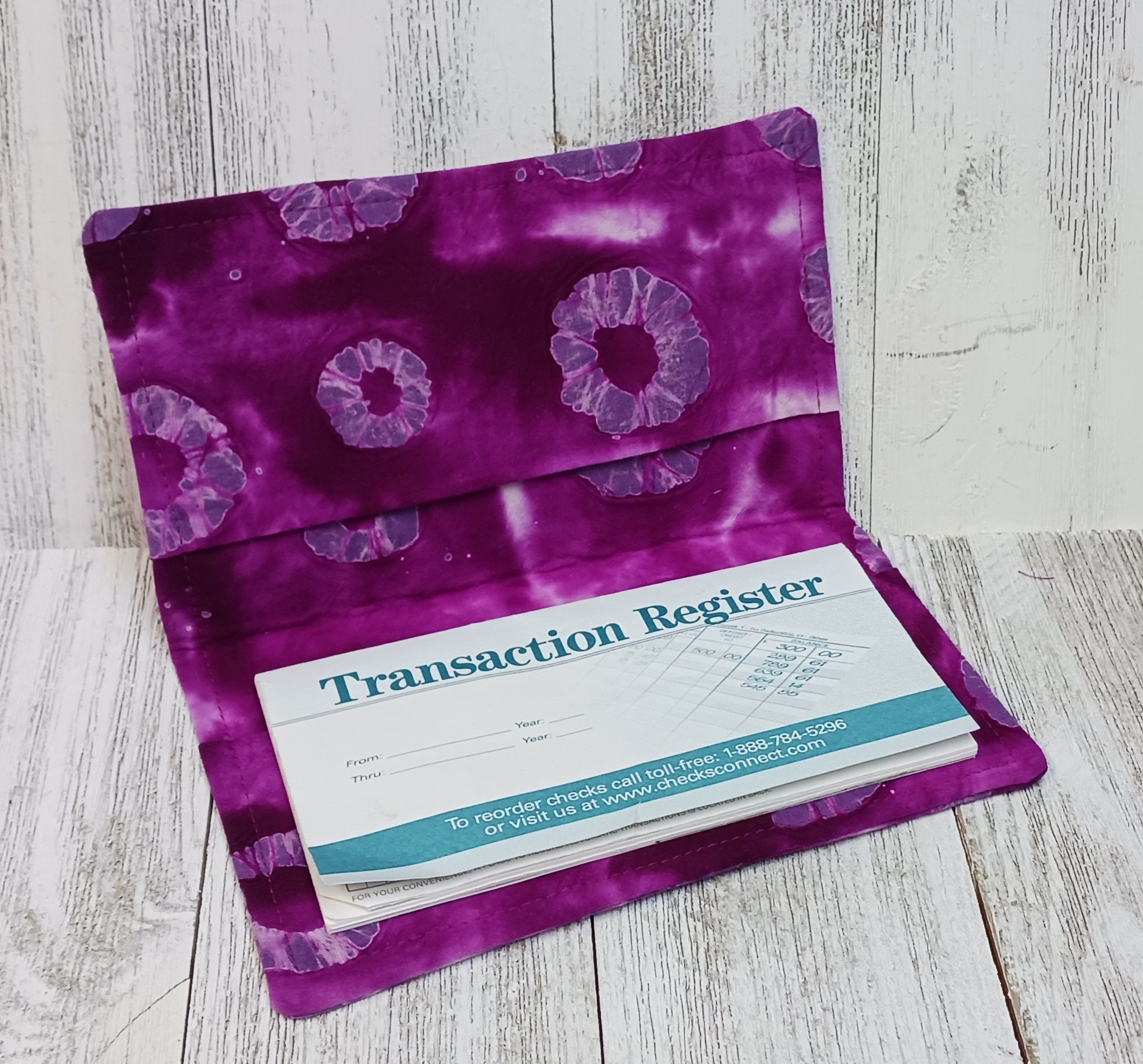 FUSCHIA PINK Purple Batik Registry Checkbook Cover Debit Card Wallet Money Holder Clutch Purse Billfold Coupon Keeper
