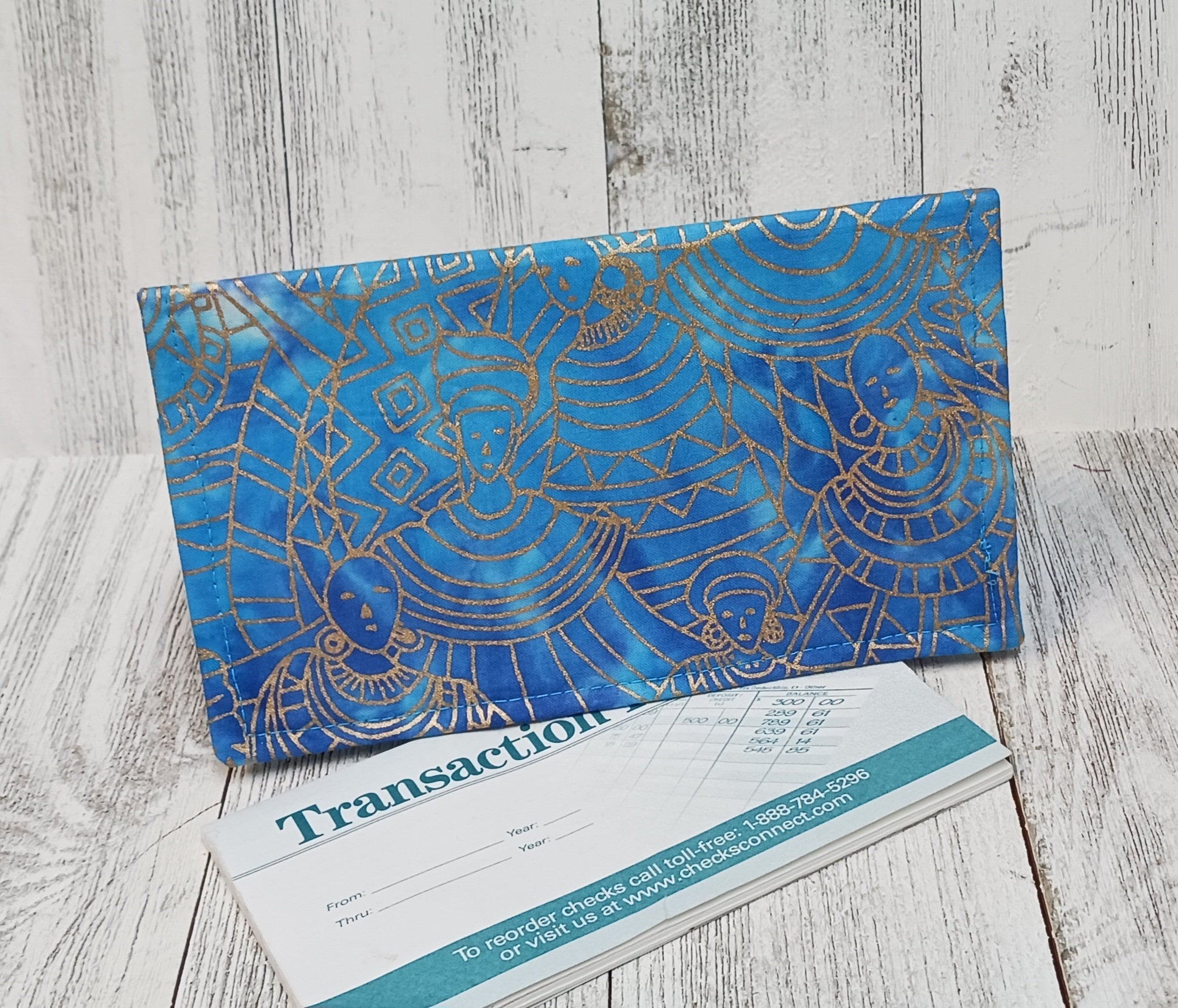 BLUE Gold Batik Checkbook Cover Debit Registry Wallet Holder Clutch Purse Billfold Coupon Keeper