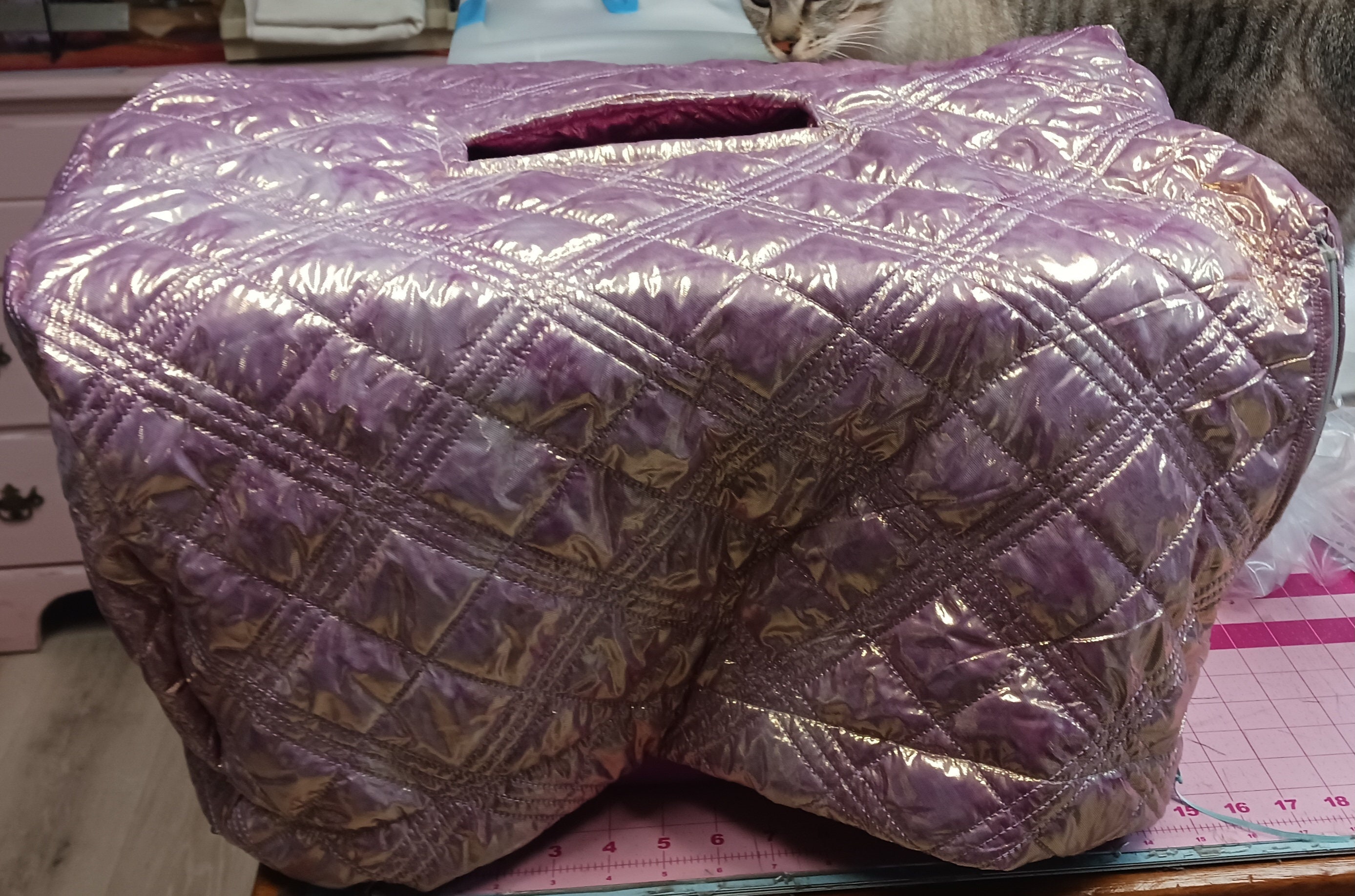 This listing is for one ready-made size MEDIUM Fabric. Approximately 24 X 12 inches. Made from cotton Quilted lame fabric. Two Front ZIPPERS opening at top for the carry handle. Gives privacy and security to your pet while traveling to shows and vet. Lavender pink color.