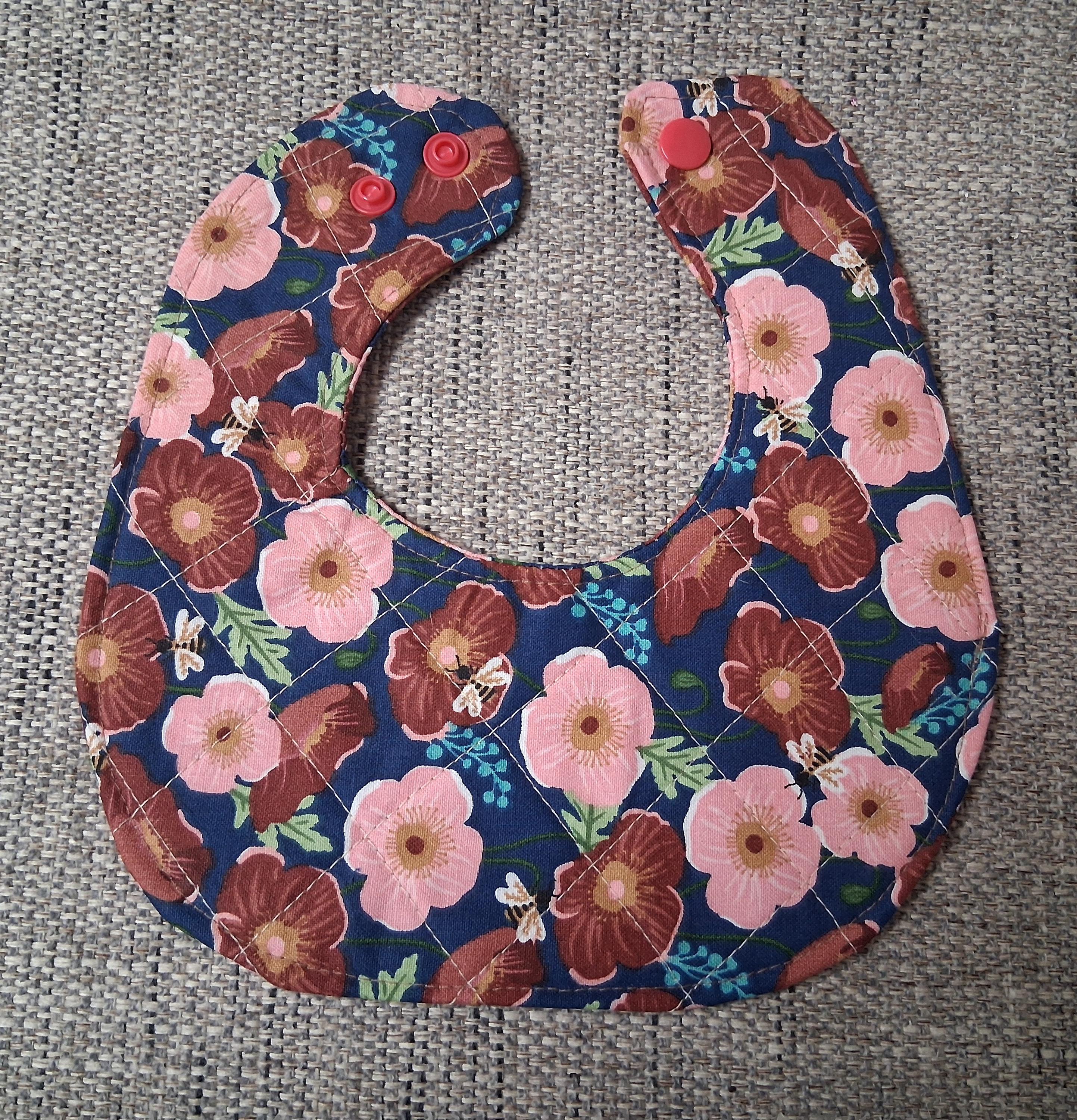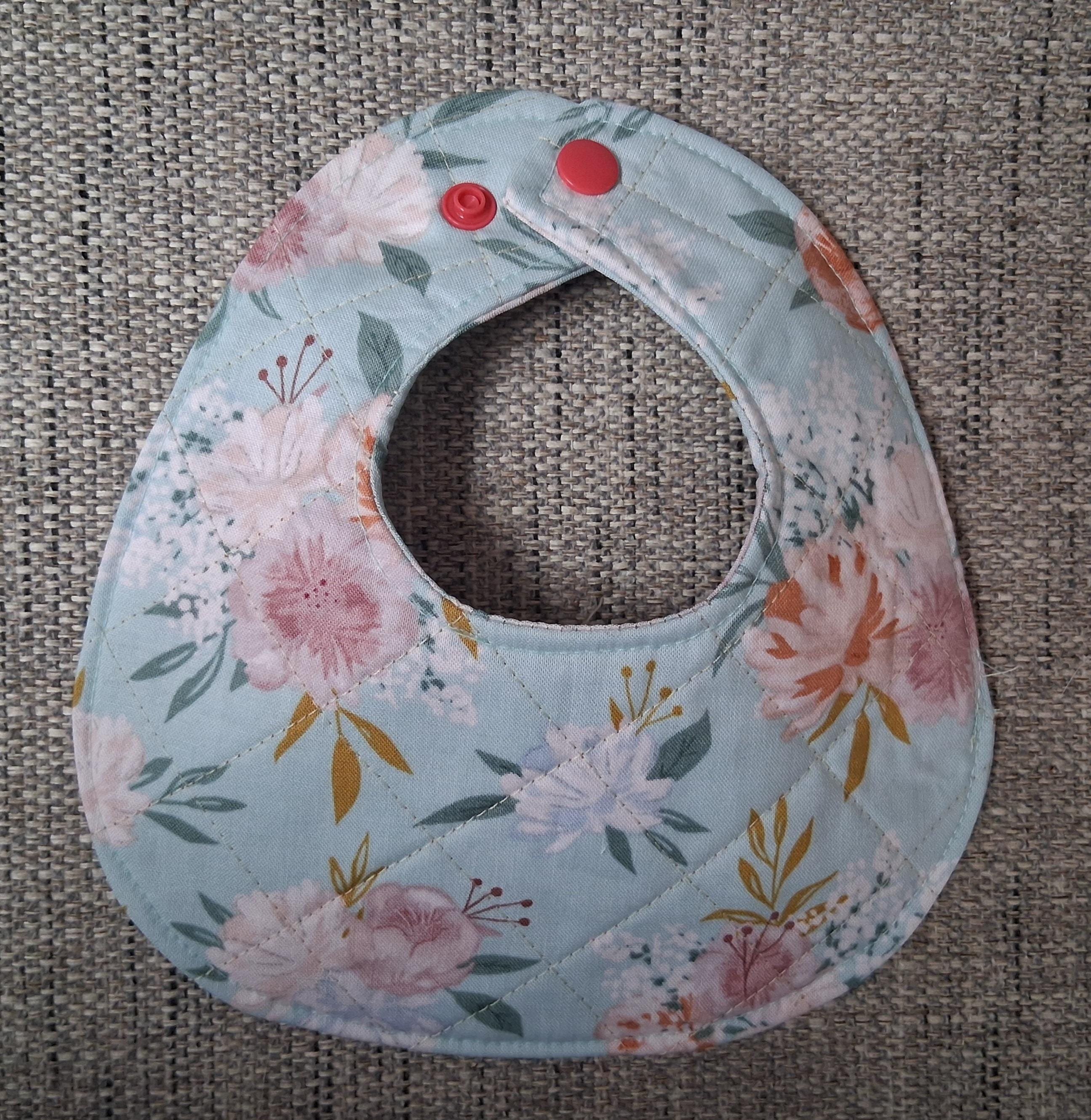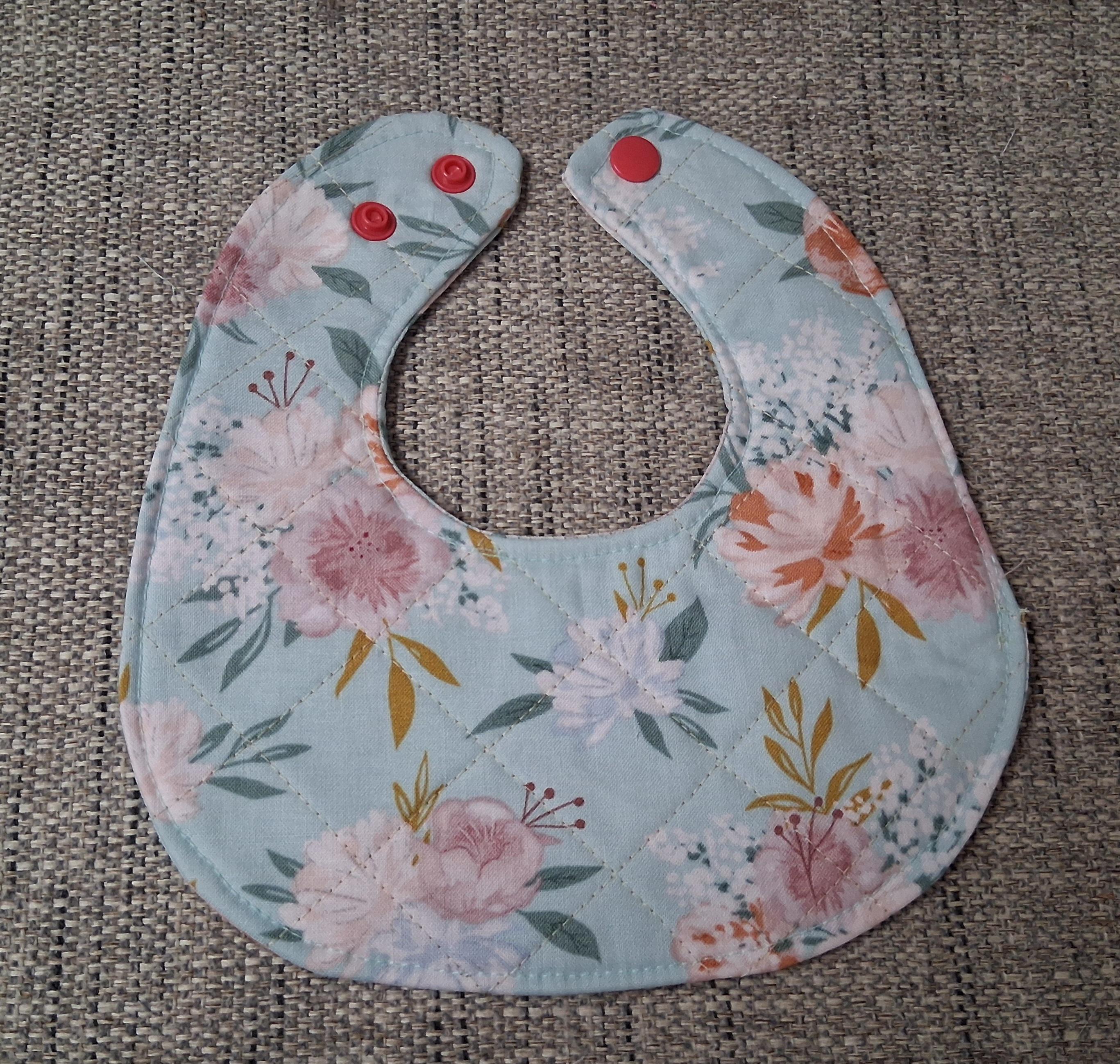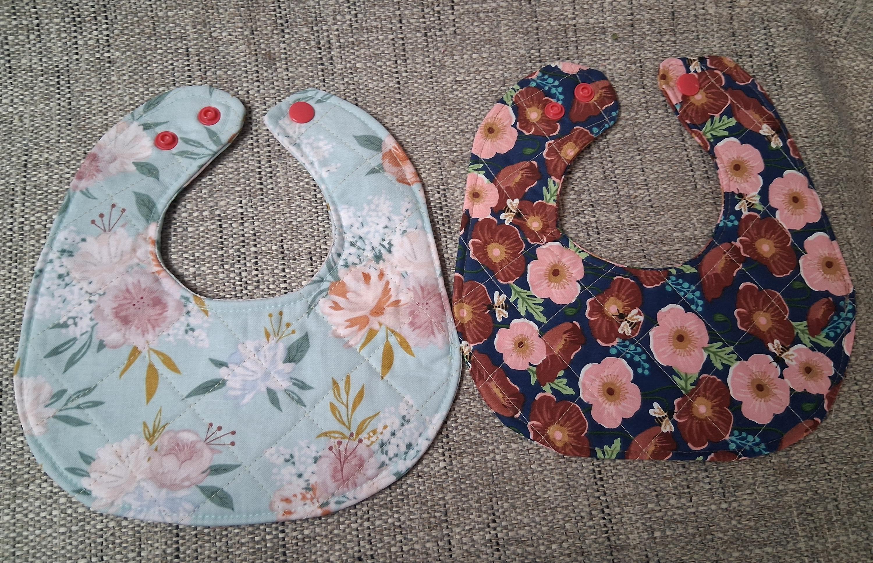 This listing is for two hand QUILTED ready-made Bibs with adjustasnap closures. one size fits most.