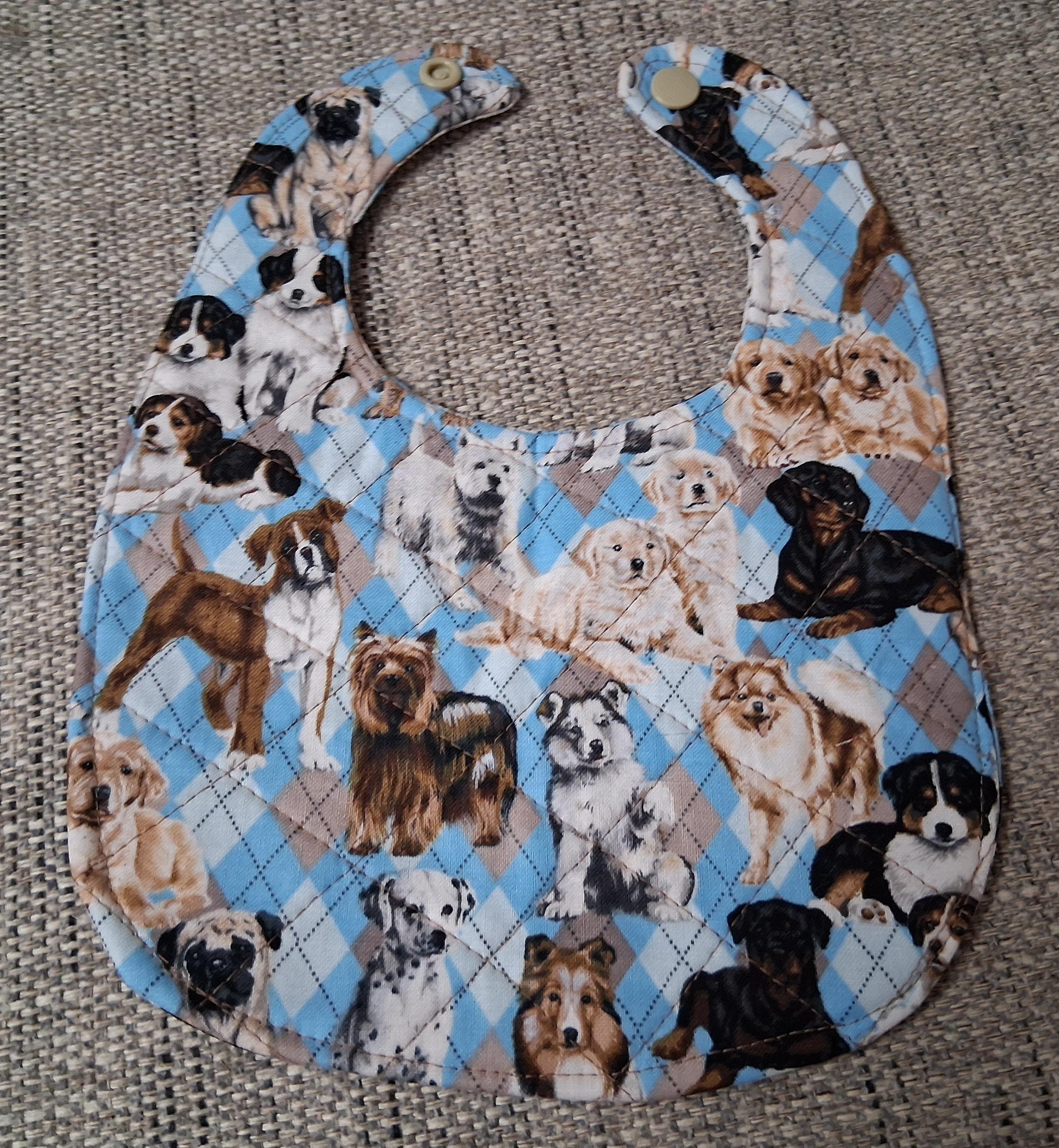 Newborn infant Baby size Diaper Cover and Quilted bib with snaps. Lovely gift or treat your own. Cotton fabrics. 100% natural.