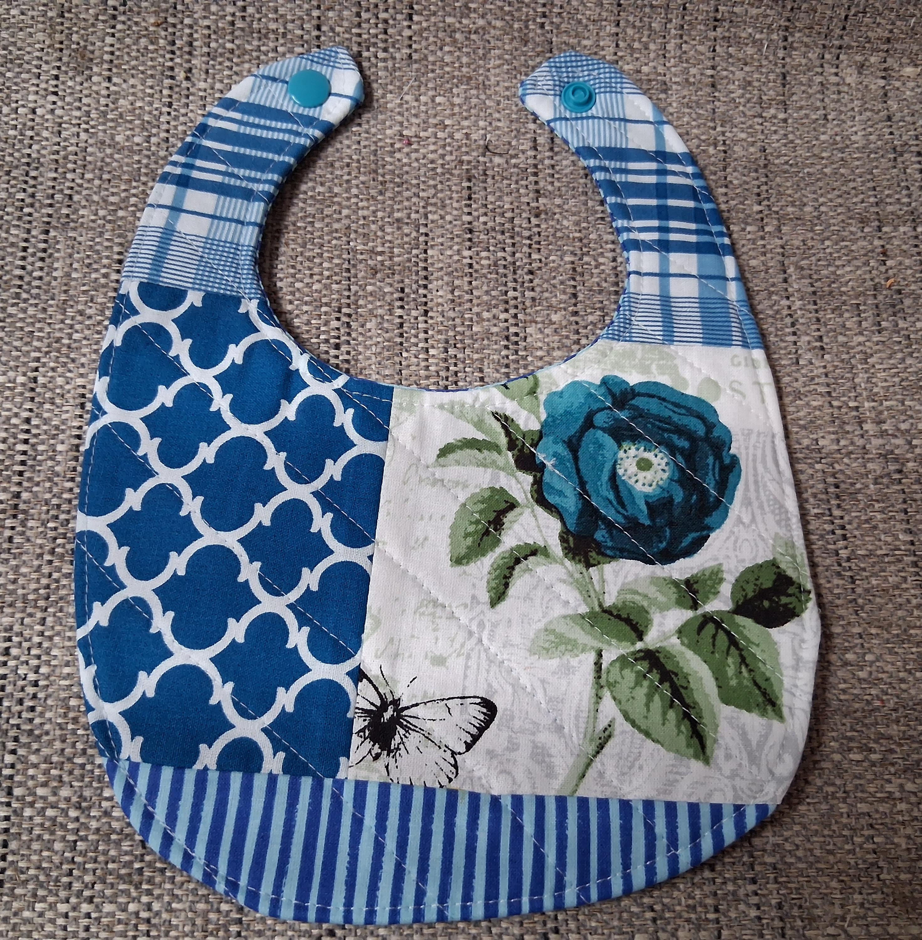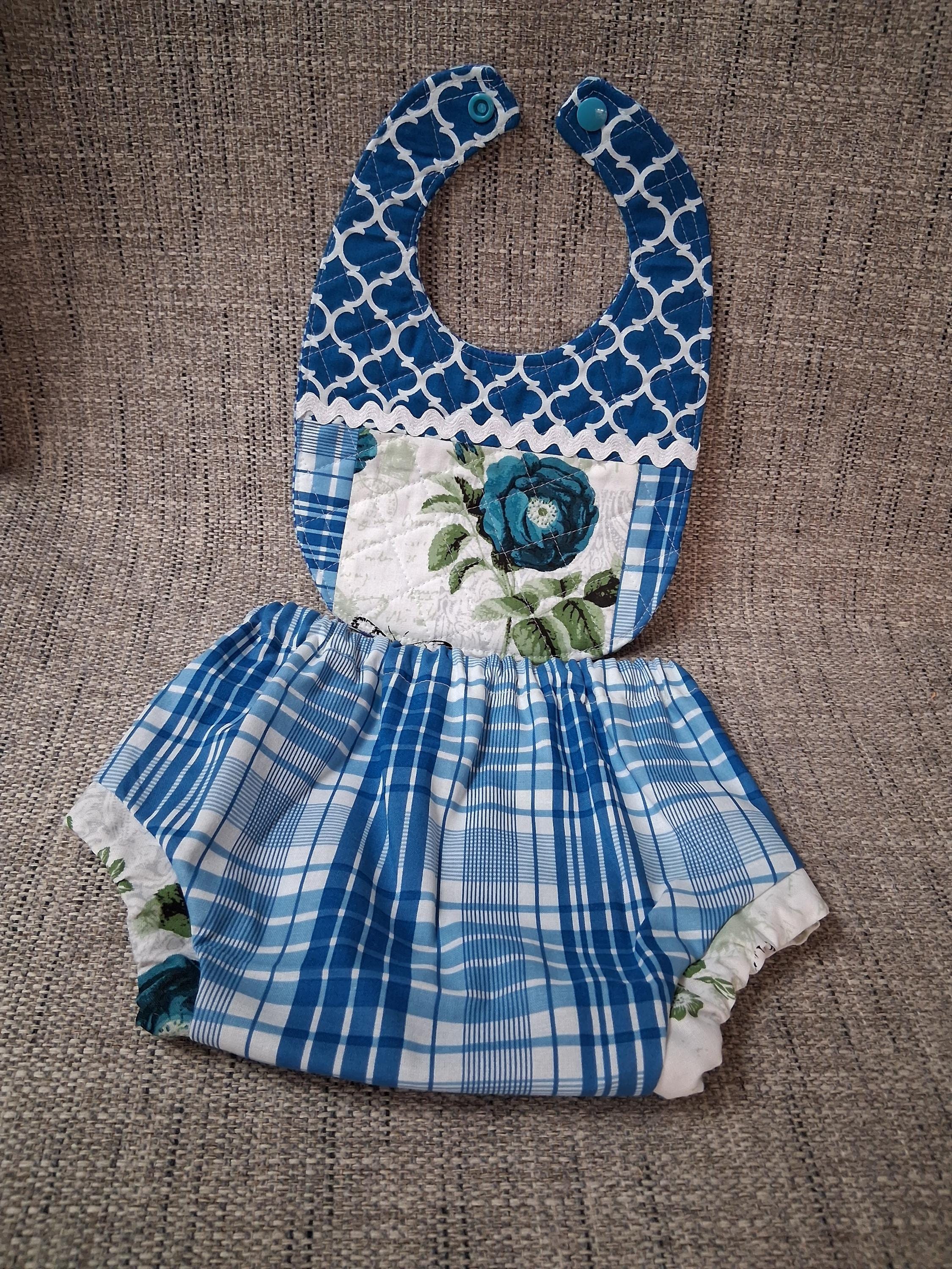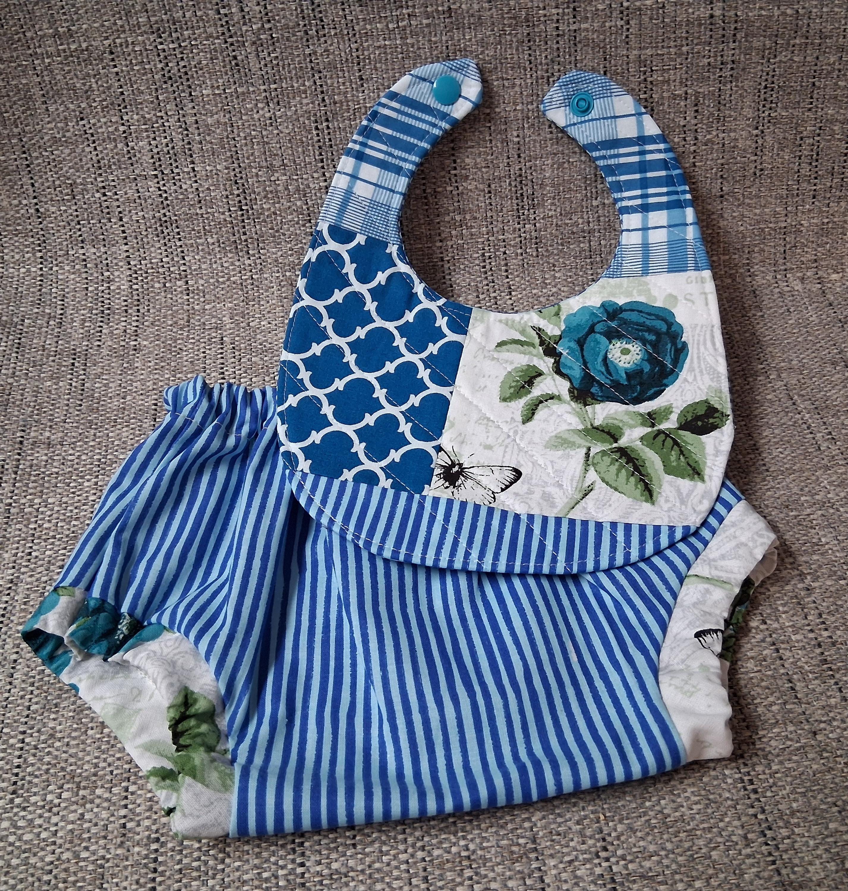 Newborn infant Baby size Diaper Cover and Quilted bib with snaps. Lovely welcome or shower gift or treat your own. Cotton fabrics. 100% natural.