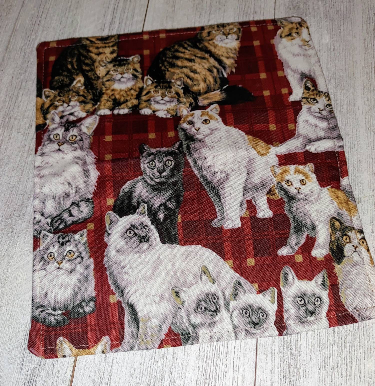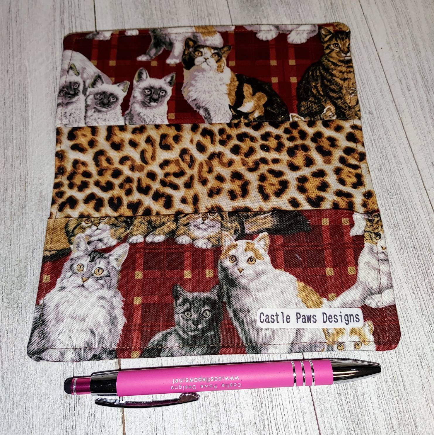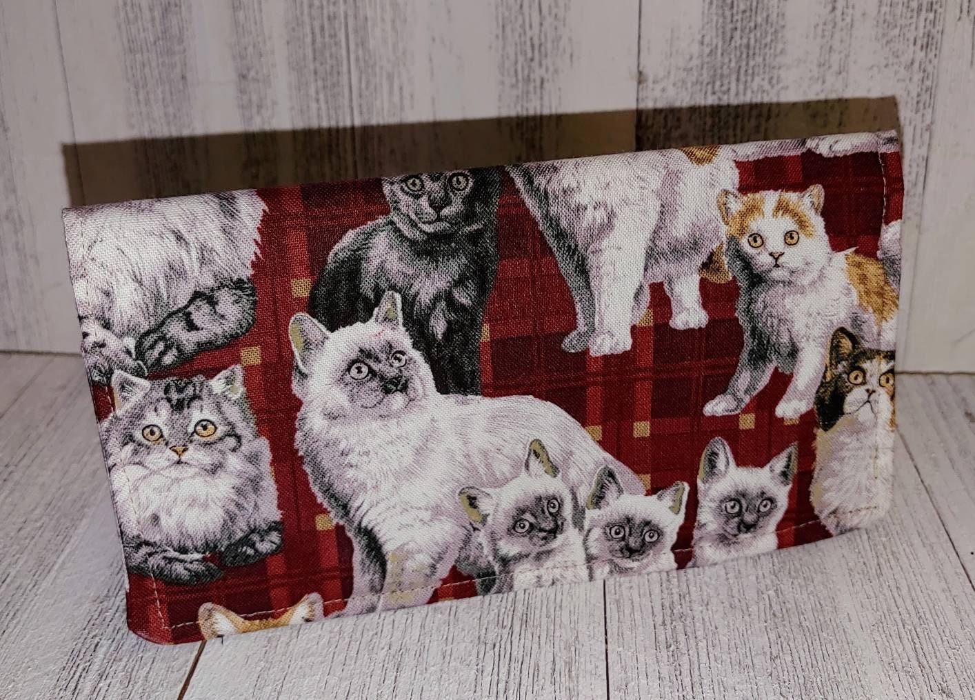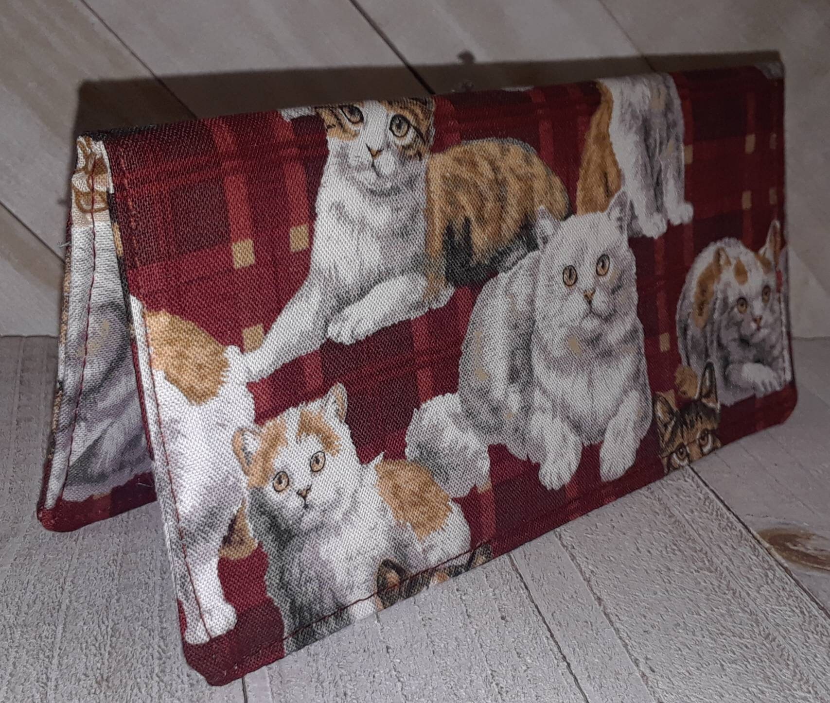 Pretty cats on a maroon background. Perfect for wallet or checkbook cover. Very pretty.