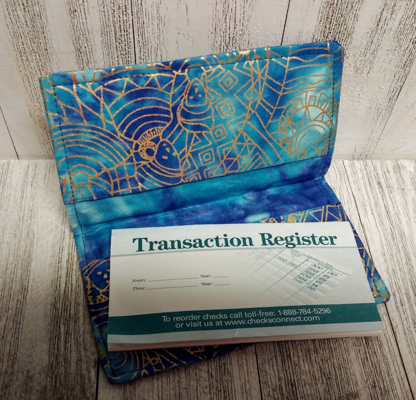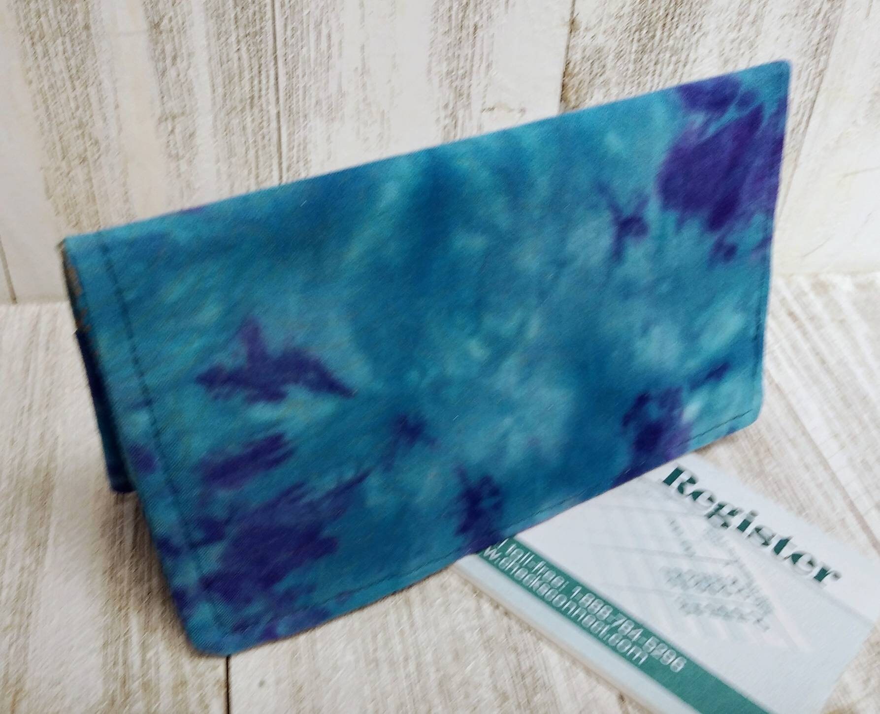 BATIK Blue Green Purple Checkbook Cover Wallet Holder Clutch Purse Billfold Coupon Keeper