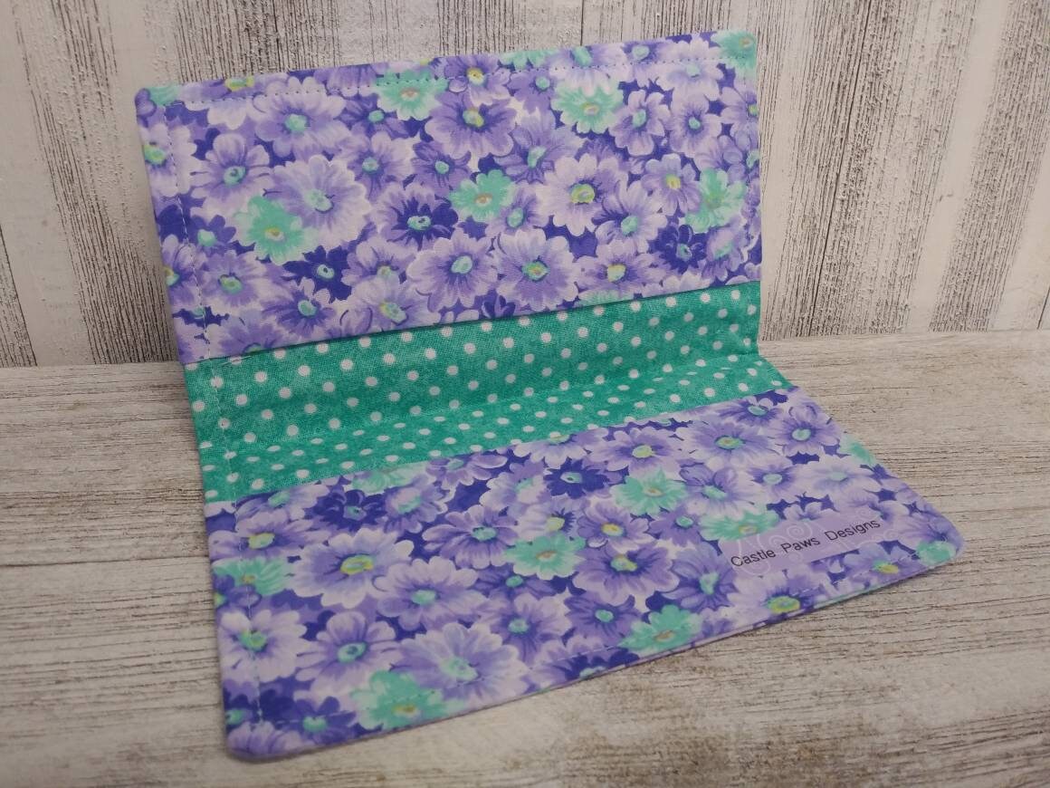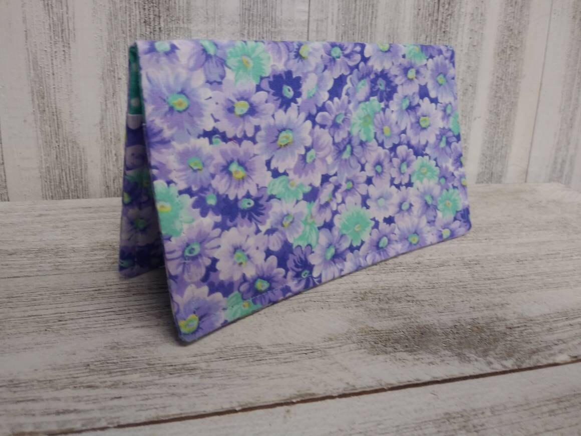 CHECK BOOK Cover Ladies Wallet Daisies Lavendar Teal Green Document Registry Coupon Organizer Purse Purple Fabric