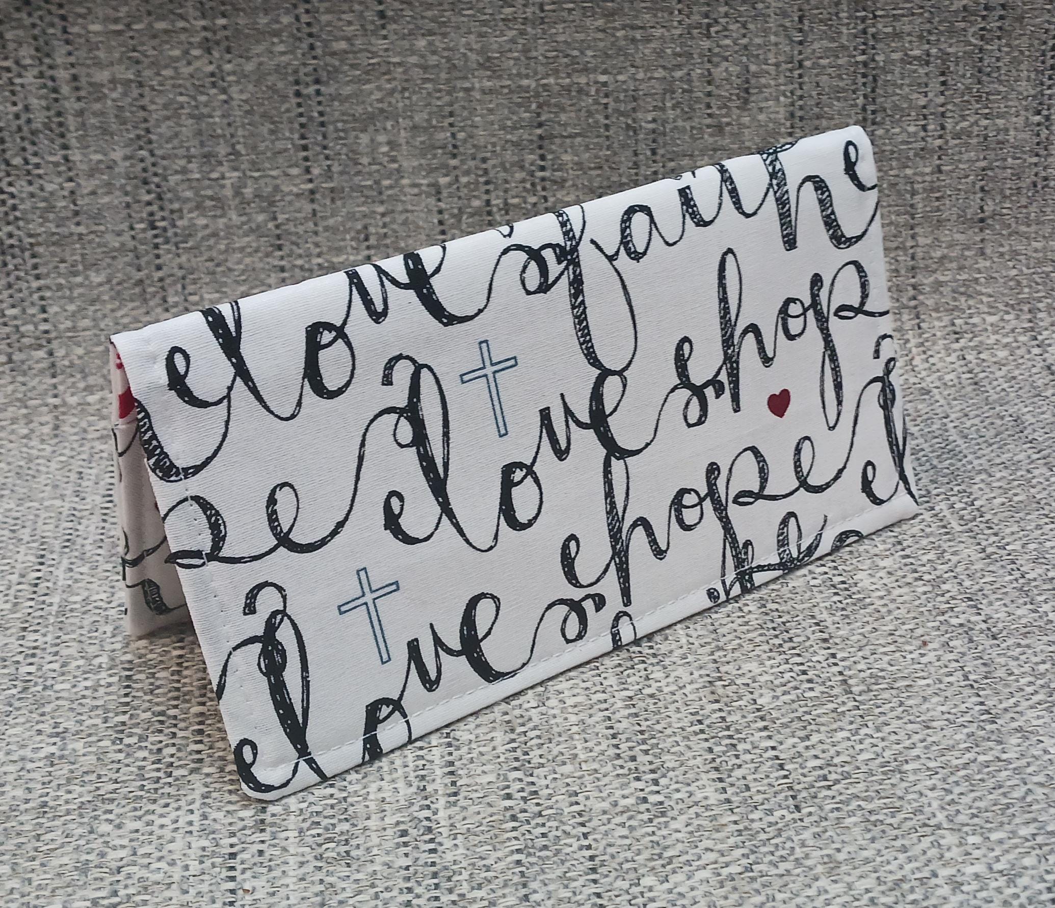 CHECK BOOK Cover Registry Love Faith Hope Document Coupon Organizer Purse Purple Fabric