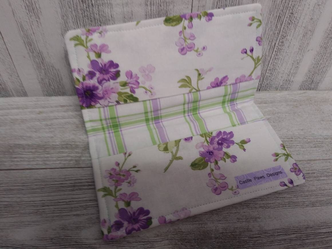 CHECK BOOK Cover Registry Purple Honey Suckle Flowers Document Coupon Organizer Purse Purple Fabric