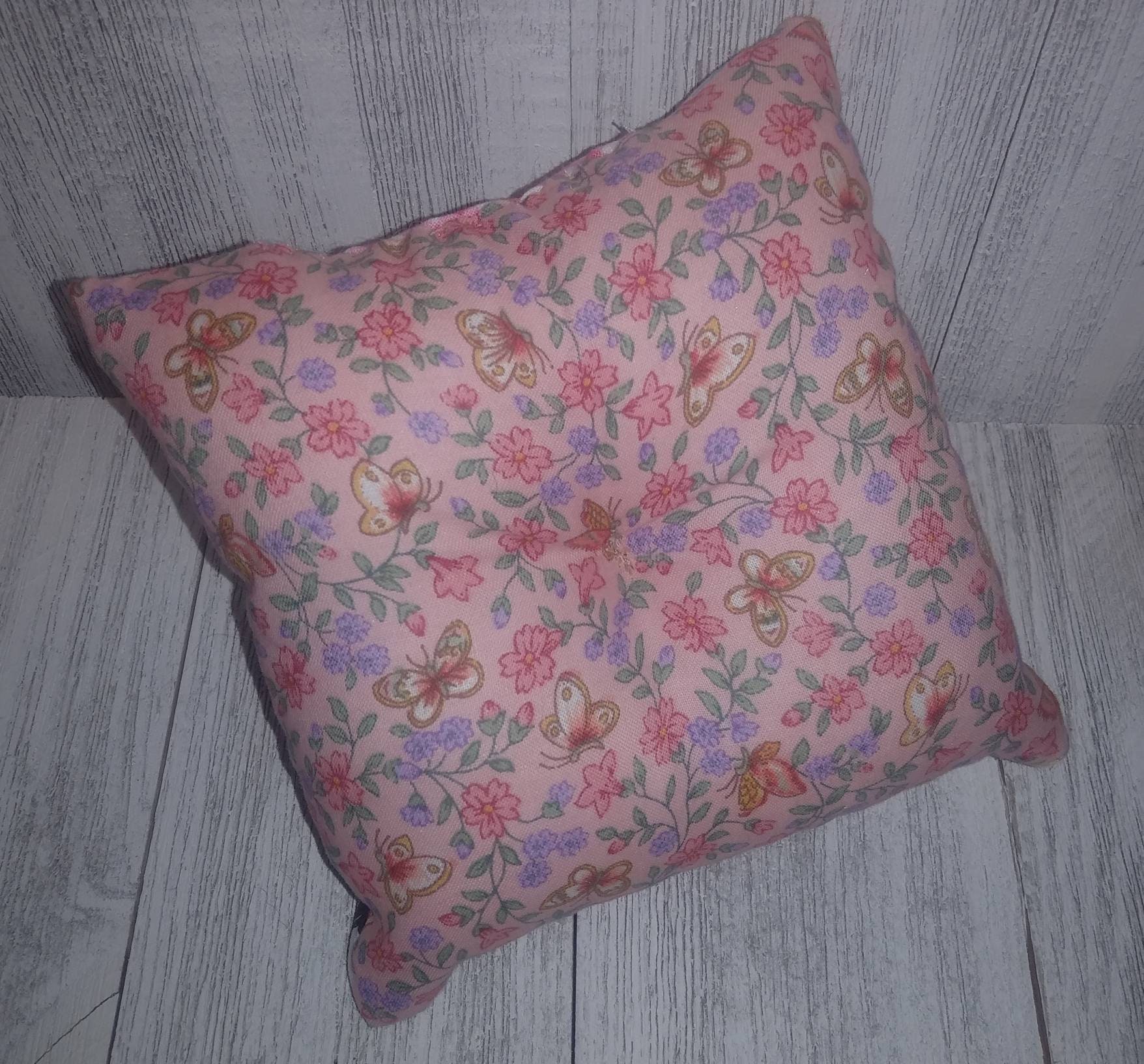 This listing is for one handmade cathedral Window Pattern Pin Cushion stuffed with poly fil. Button tufted. Size is about 4.5 X 4.5 inches. From non smoking home.